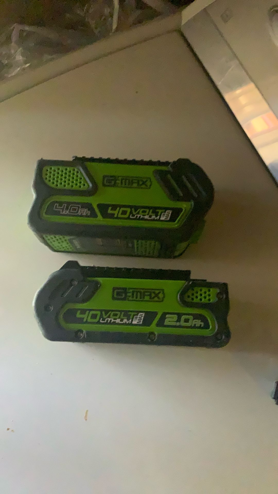 I have 2 Greenworks 40V 4.0Ah and 2.0 Ah Lithium-Ion Batteries (Genuine Greenworks Battery / 75+ Compatible Tools ‼️I ONLY HAVE THE BATTERY NO CHARGER INCLUDED AS YOU CAN SEE IT HAS THREE BARS OF CHARGE ‼️‼️‼️ ‼️‼️ ASKING 40 OBO ‼️‼️ THE 4.0Ah is worth 140.00 on AMAZON AND THE 2.0 Ah is worth 60.00 THATS 200 ‼️‼️‼️IM ASKING ONLY 40 OBO FOR BOTH BATTERIES ‼️‼️‼️ IF YOU ONLY WANT 1 WE CAN WORK SOMETHING OUT