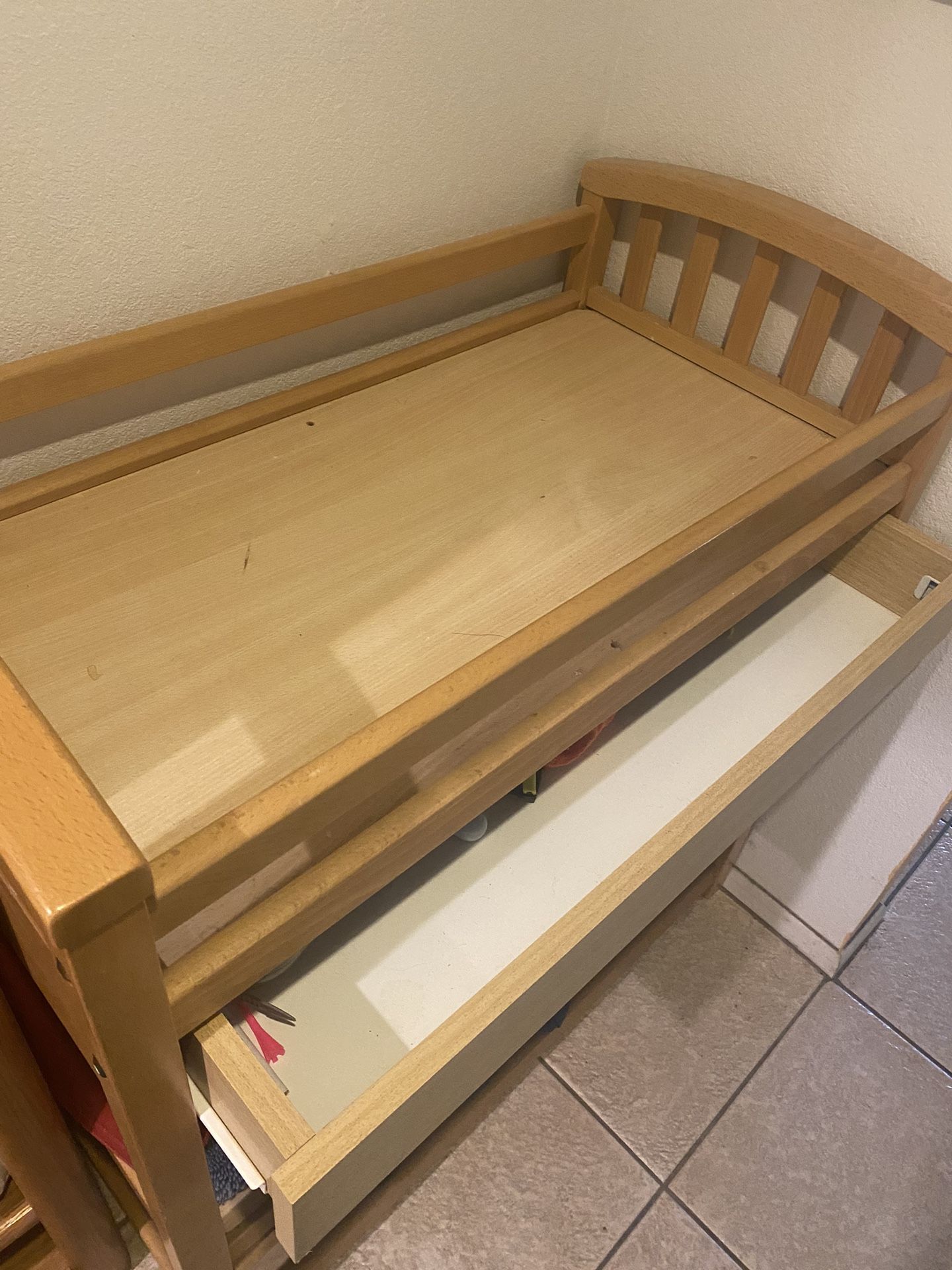 Solid wood oak baby change table. Drawer and shelves. Brand name high quality.