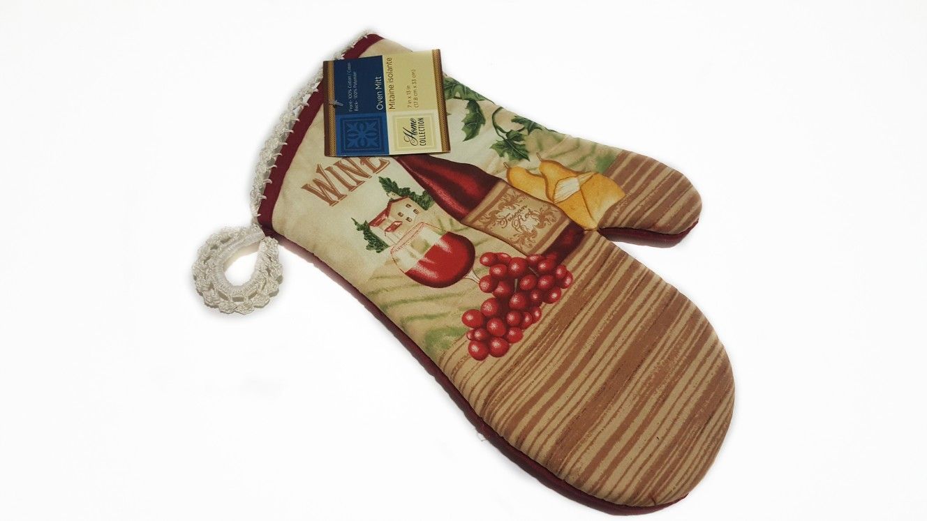 Wine,Kitchen,Grapes,Oven Potholder Mitt,Hanging,Glove,Fancy,Delicate, Ruffle,Trimming