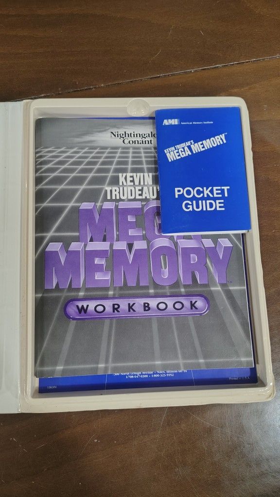 Kevin Trudeau's Mega Memory and Advanced Mega Memory cassette tape sets from Nightingale-Conant. As seen on TV back in the day! Mega Memory set includes 8 cassette tapes (lessons 1, 3, 5, 10, 11, 13, 16 + "How to Remember Everything in Your Past"), workbook, and pocket guide. Advanced Mega Memory set includes binder with Memory Builder book, pocket guide, and materials. Both sets are in used condition, everything works fine. Great for anyone into vintage self-improvement stuff or cassette collectors. Pick up in Rancho Peñasquitos, San Diego.