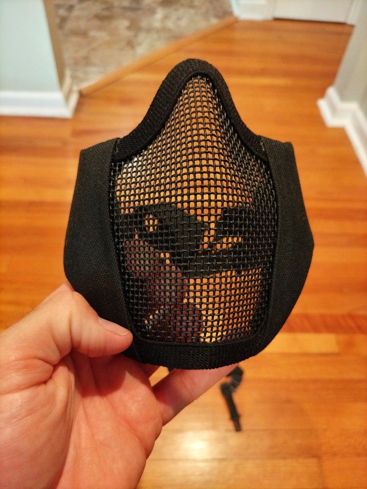 Most mesh masks offer good ventilation, but does your beard itch or get in the way? OneTigris knows how to comfortably sandwich your face during gameplay while offering protection with soft padded nylon edges & double strap support to ensure a tight fit underneath your goggles/eye pro. Steel & 1000D nylon. SCREAM Foldable Mask: Soft padded nylon fabric cheek sides with protection for bridge of nose providing comfort and good protection. Lightweight & Folding Mesh Mask Design: Foldable mask makes it easy to carry; Superb air ventilation prevents fogging from the mesh part. 6" Size Fits Most: Twin strap support with skull cap band for a snug fit for different head sizes. Multipurpose Steel Metal Mesh Face. Mask: Good with eye pro that are in the style of glasses during outdoor activities. This mesh mask has passed ANSI Z80.3 drop ball test. At a temperature of -10℃~42℃, the impact resistance is at least 800 FPS.