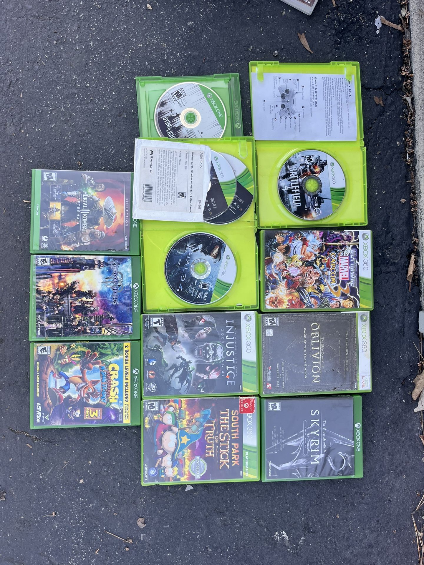 1. Middle-earth: Shadow of Mordor 2 (Xbox One) Disc only, in working condition. Tested and plays without issues. No case included. Starting Price: $8 2. The Elder Scrolls V: Skyrim (Xbox One) Disc has some scratches but works fine. Comes with original case and manual. Great for fans of RPG adventures. Starting Price: $12 3. Dying Light (Xbox One) Disc is in excellent condition with no scratches. Comes in a non-original case, no manual included. Ready to play. Starting Price: $10 5. Capcom vs. Marvel (Xbox 360) Complete with original case and manual. Disc is scratch-free. Classic fighting game for collectors and players alike. Starting Price: $15 6. Battlefield 4 (Xbox 360) Disc only, in excellent condition with no scratches. Comes in a non-original case. Ready for multiplayer action. Starting Price: $5 7. Halo 4 (Disc 1 only) (Xbox 360) Disc is scratch-free but no case included. Note this is Disc 1 only; check compatibility before purchasing. Starting Price: $4 8. Injustice (Xbox 360) Complete with original case and manual. Disc is in excellent condition with no scratches. Great fighting game with popular characters. Starting Price: $14 9. South Park: The Stick of Truth (Xbox 360) Comes with original case. Disc has light scratches but plays well. Fun RPG based on the South Park series. Starting Price: $9 10. Guitar Hero III: Legends of Rock (PlayStation 3) Complete with original case and manual. Disc shows no scratches. Perfect for rock and rhythm game fans. Starting Price: $14 11. Mortal Kombat 11: Aftermath Kollection (Xbox One) Complete with original case, disc in excellent condition. Includes a redeemable code for DLC—please note code may have been used. Starting Price: $22 12. Cabela’s Deer Hunt: 2005 Season (Xbox) Disc only, no scratches. No case or manual included. Great for hunting game enthusiasts. Starting Price: $6 13. Tiger Woods PGA Tour 07 (Xbox 360) Complete with original case and manual. Disc in excellent condition with no scratches. Great for golf fans. Starting Price: $8 14. Tiger Woods PGA Tour 06 (Nintendo GameCube) Includes original case and manual. Disc has light scratches but works perfectly. Classic golf gameplay. Starting Price: $9 If the description is still up, the game is still available.