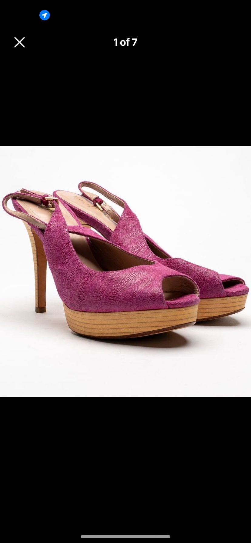 COLE HAAN Pink Fuchsia Mariela Slingback Open Toe Pumps Sandals Heels size 10B Gently used Manufacturer: Cole Haan Size: 10B Manufacturer Color: Beet Exotic Print Retail: $328.00 Condition: Gently Used Style Type: Slingbacks Collection: Cole Haan Heel Height: ~5 1/4 Inches Platform Height: ~1 Inches Closure: Buckle Material: Leather Suede upper, Leather Outsole Fabric Type: Embossed Specialty: Textured Style Number: D36933 Sku: 1257597 Photos by Willful Photography New items listed daily! Feel free to bundle, shoot us a message or make offers on anything. Tags: #heels #slingbacks #shoes #stillettos #fashion #colehaan #pink #90s #popstar #ootd #leather #wood #highheel