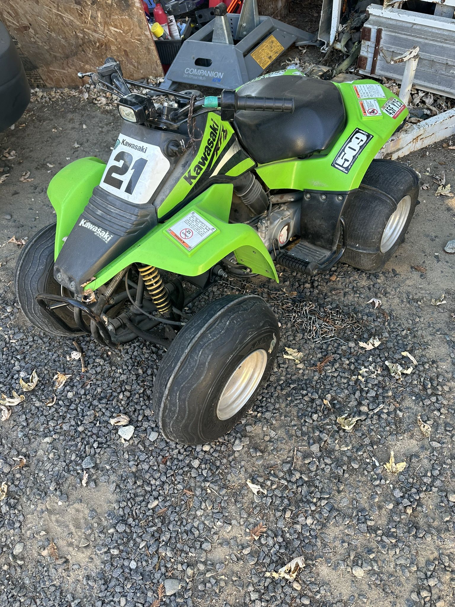 This is a 2 stroke. Only used in the sand. Probably only used 10-15 times in 20 years kid it was bought for is 30 years old now. Still in great shape and runs great. Has sand tires, sand gear sprocket setup and sand shocks springs. Head light and tail lights.