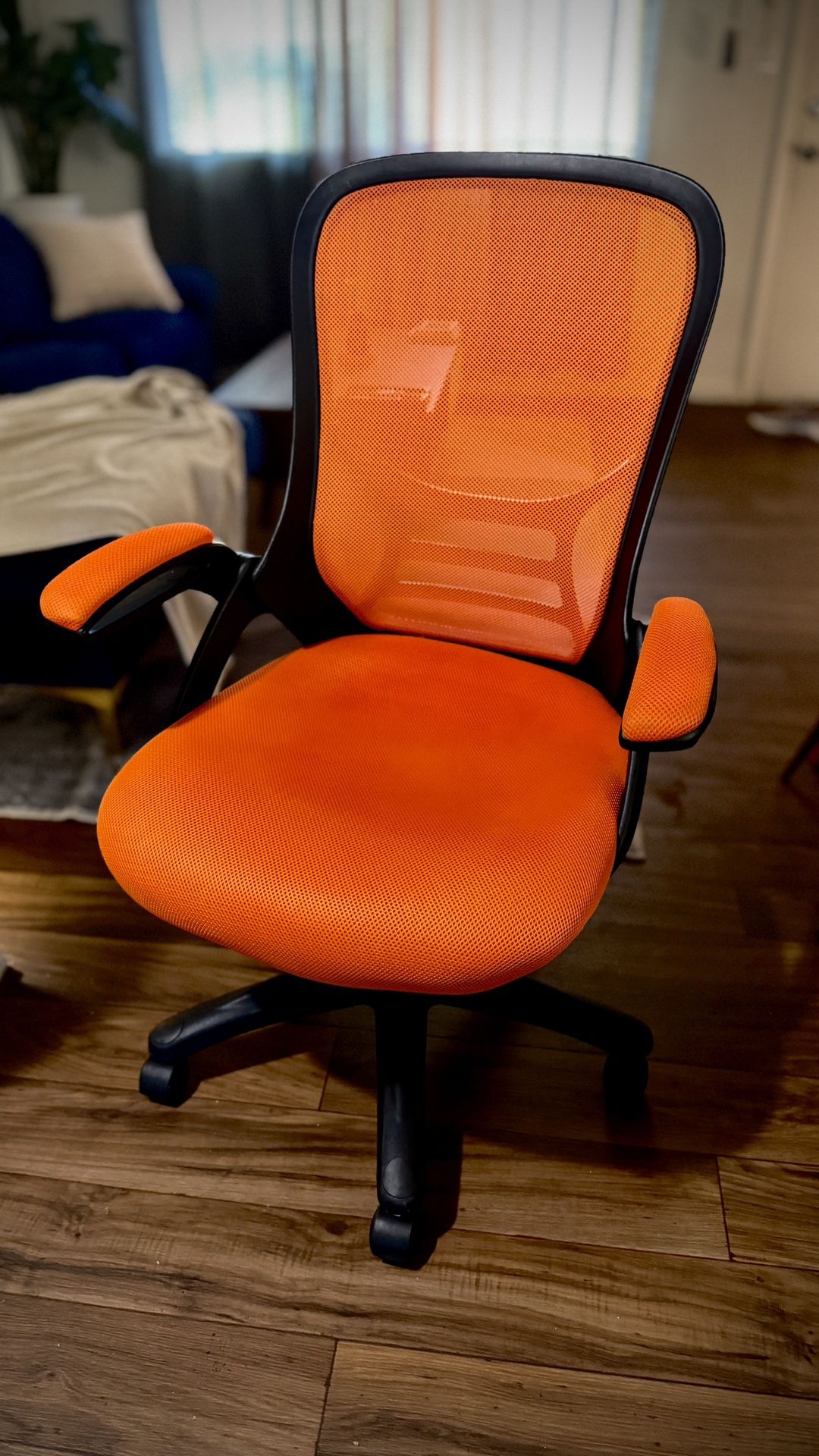 Mid-Back Orang Mesh Back & Leatherette Seat Office Task Chair with Flip-Up Arms