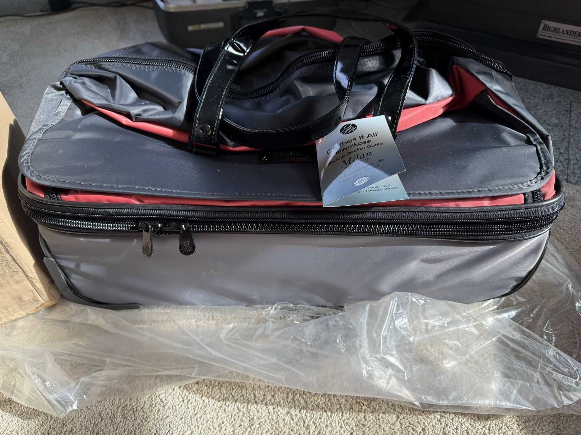 Brand new JM “Clothes It All” Double Decker Duffle Bag – Model Milan Stylish and functional color block design with black, red, and gray tones. Features: • Size: 28 x 25 x 58 cm • Double decker compartments – great for separating clothes, shoes, and gear • Zippered pockets for easy organization • Durable material and sturdy handles • Perfect for travel, weekend trips, or gym Condition: New with tags, never used.
