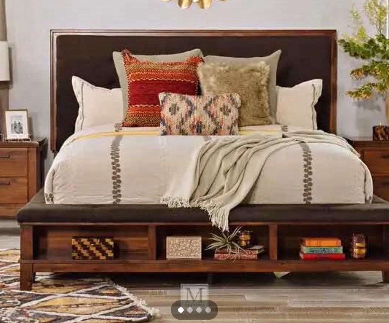 -Cal king bed with fabric bench bottom, shoe/ storage areas tall fabric headboard and fabric rails. -(2) 2 drawer nitestands -Cal King Casper Mattress set (does have stains, my son spilt juice on my bed during his toddler years a few times, i did bissell a few times- but stained- not perfect- that is why im throwing in the full cover ) Very comfortable ! soft, but not to soft- we have back issues and found it very comfortable -Mattress topper with cover - paid $160 on amazon Need gone as soon as possible - in Glendora border San Dimas ** If not pending or sold- It’s still available, no need to ask.