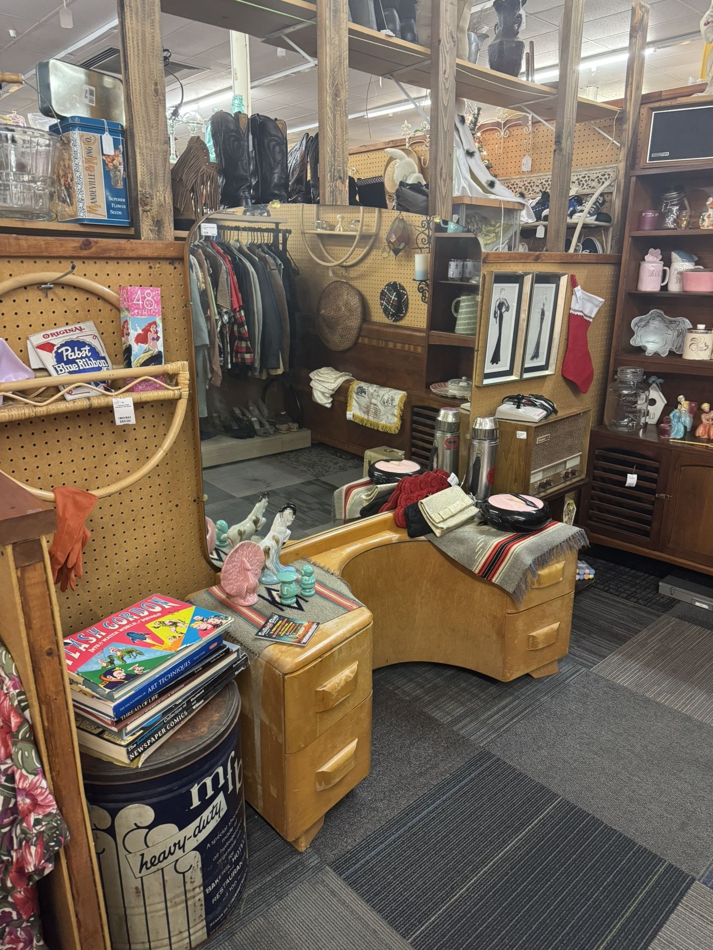 Vintage Heywood Wakefield vanity in good condition. Large mirror with four drawers. 48” wide 20” deep 60” high View it in person Booth E14 Call it New/ Call it Antique 2049 W Broadway Road Mesa, Az 85202