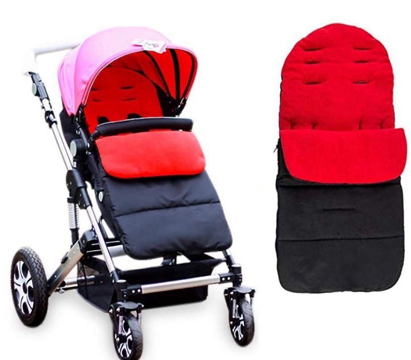 Baby Sleeping Bag Universal 3 in 1 Stroller Annex Mat Footmuff Cover Stroller Bunting Bag Waterproof Windproof Cold-Proof Detachable (Red)