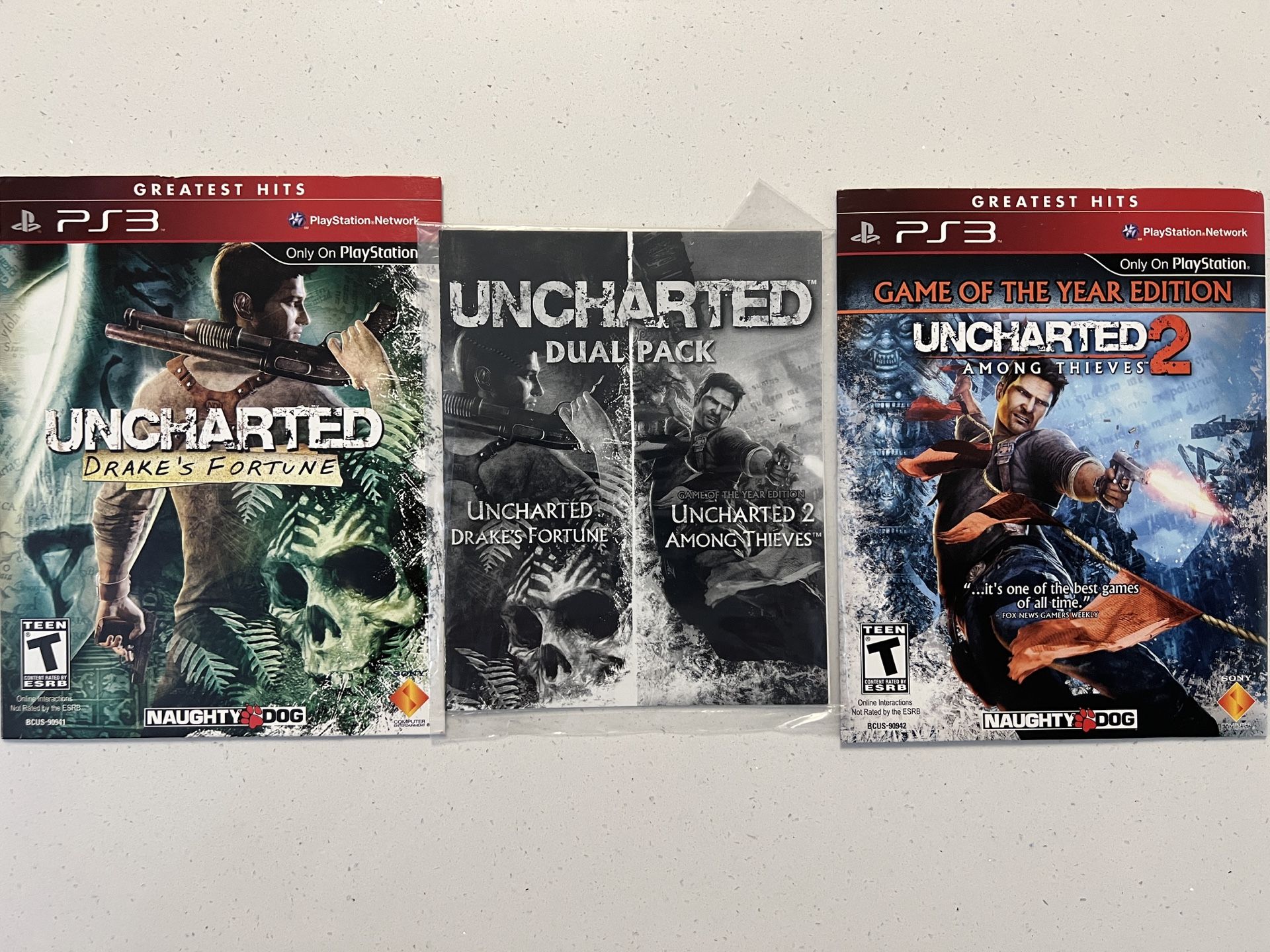 Uncharted: Drakes Fortune Uncharted 2: Among Thieves Both games and their slips are in good condition.