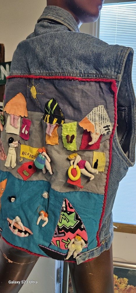 Vintage Mossimo denim Jacket Vest Unique Custom Handcrafted Back Miami Beach M