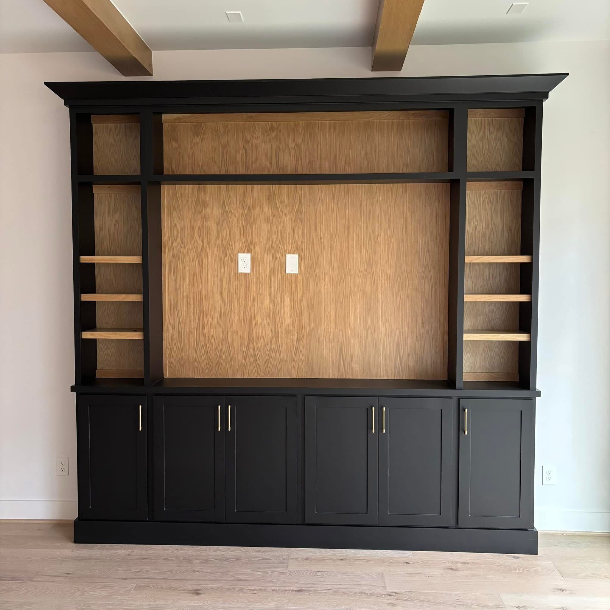 Shaker doors with something closed hinges. Oak shelves and backboard panels.