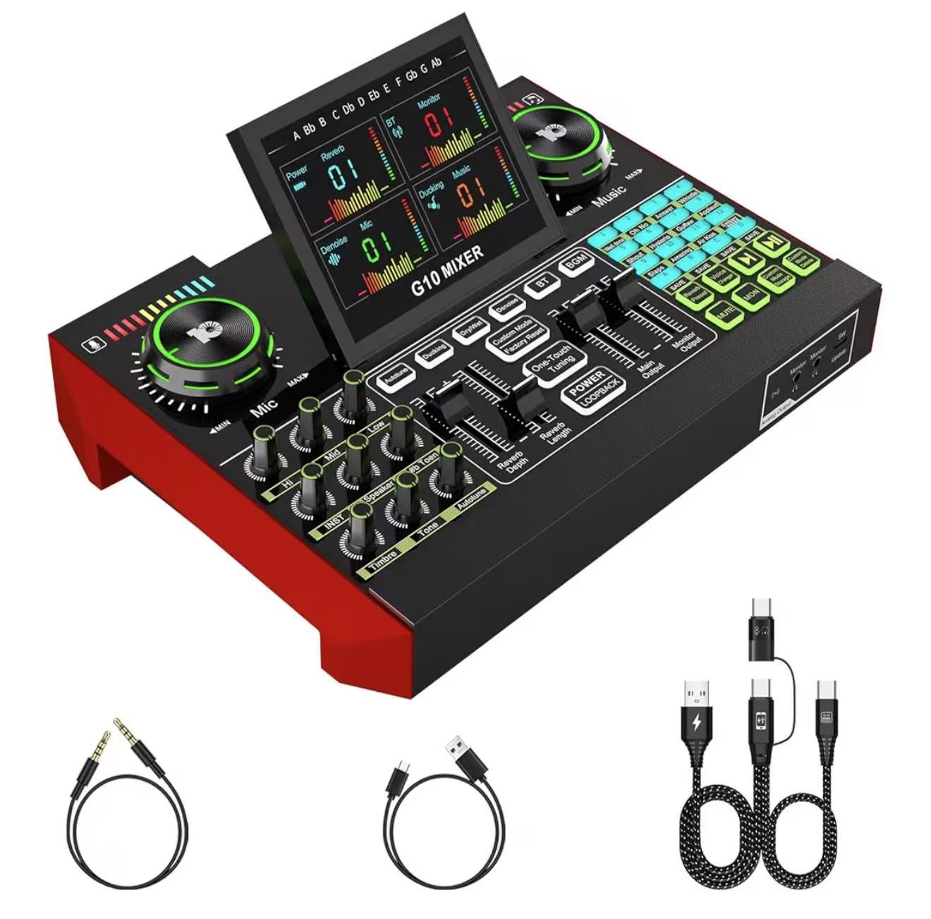 tenlamp G10 Gaming Audio Mixer, Audio Interface with 3.5mm/XLR Microphone Input, 48V Phantom Power, Voice Changer Live Sound Card for Streaming, Podca