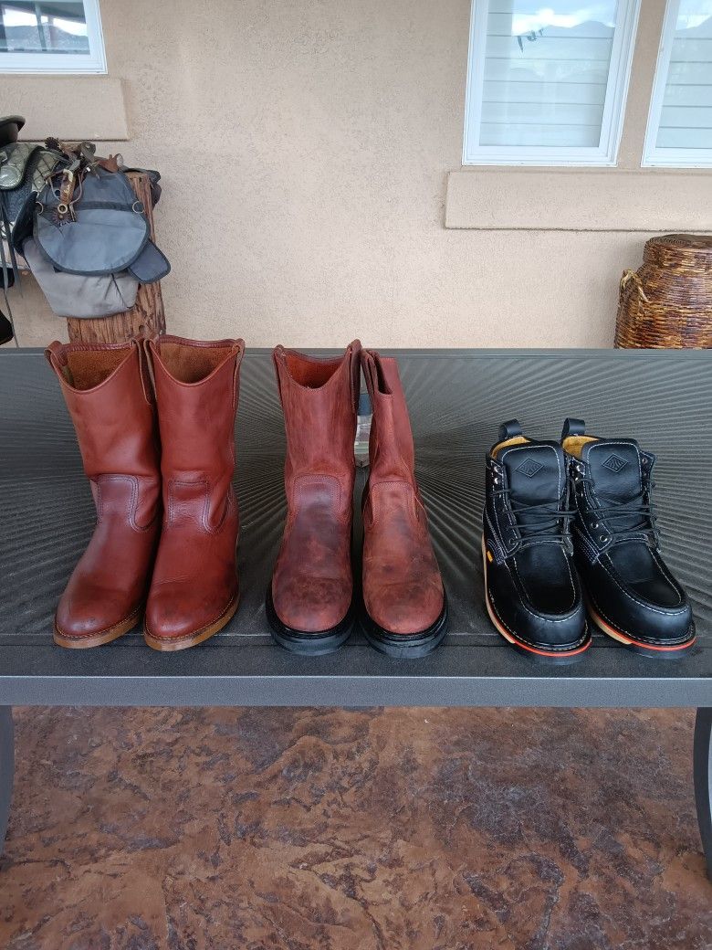1st boots red wing size 10 D $200 2nd boots silver bull 10.5 $85 3rd boots bananza 8.5 $85 Total $370