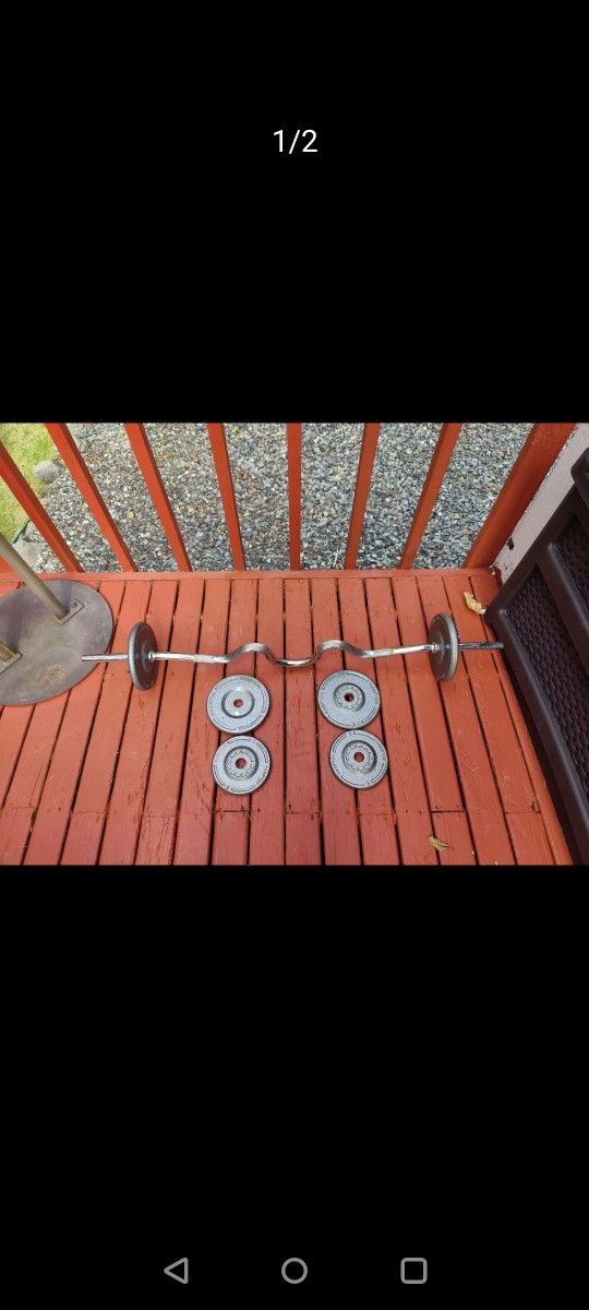 Hampton curl bar with weights. 2x7.5lb weights 2x5lb weights 2x10lb weights Obo