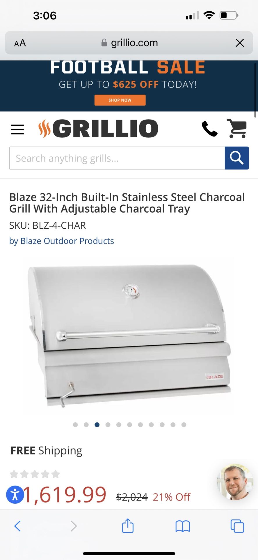 Indulge in your love of charcoal grilling with this modernized Blaze 32-Inch Built-In Stainless Steel Charcoal Grill with Adjustable Charcoal Tray. The grill features a deep charcoal tray that sits beneath the surface and can be adjusted to the perfect height for your preferences. The grilling surface measures a spacious 30 inches in width by 21.25 inches in depth by 8.5 inches in height and is made from easy-to-clean, durable stainless steel.