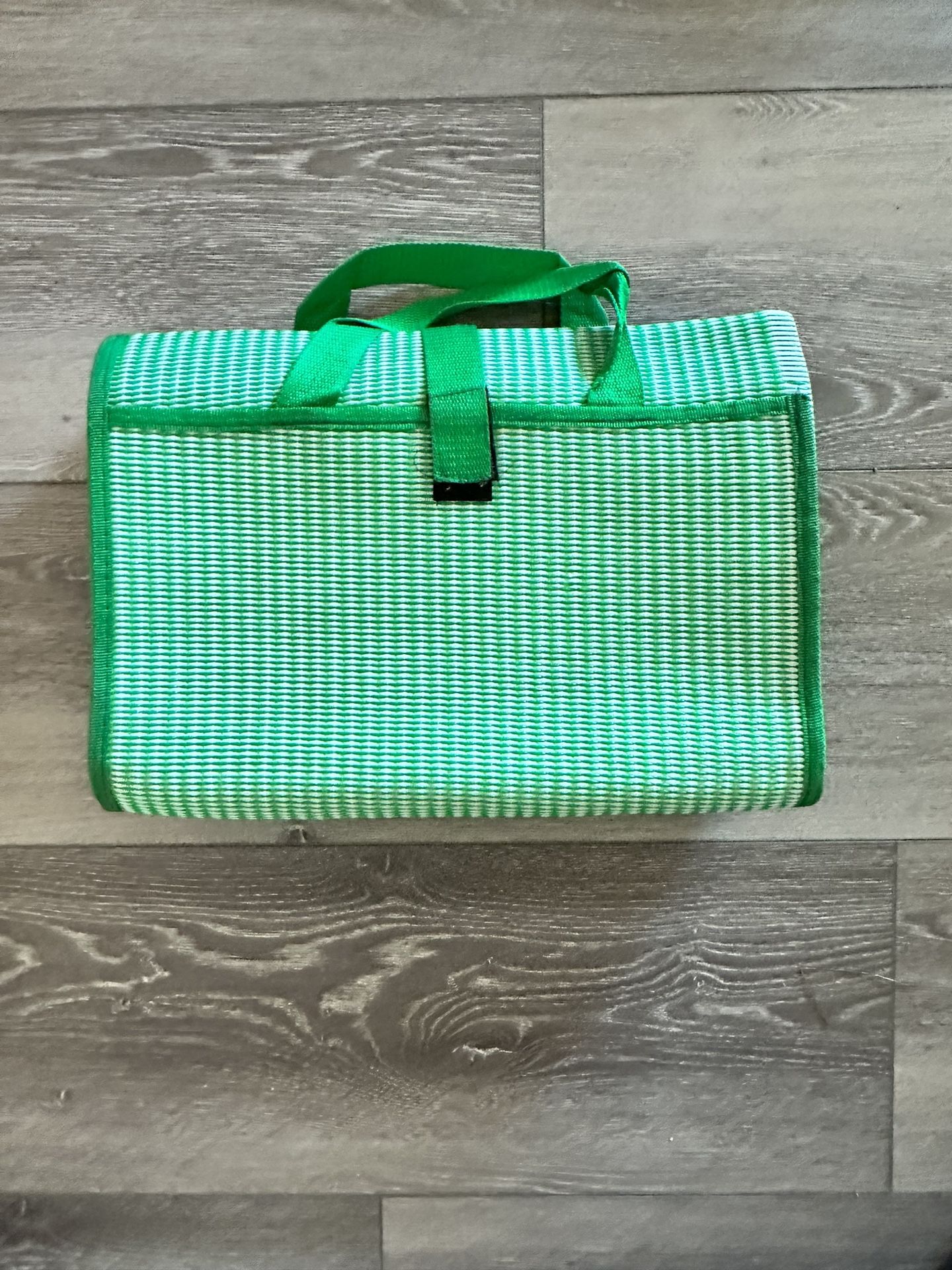 The Handy Mat is perfect to take with you wherever you go. Includes built-in handles and convenient pockets on both sides. Folds out to 60"x78" and folds to a compact 10.5"x15". Perfect for picnics, beaches, RVing, and outings. Durable polypropylene. Features & details Built-in handles for easy transport Convenient pockets on both sides Durable, weather resistant material Folds out to 60 x 78 inches and folds to a compact 10.5 x 15 inches for easy storage Can be easily cleaned with soap and water