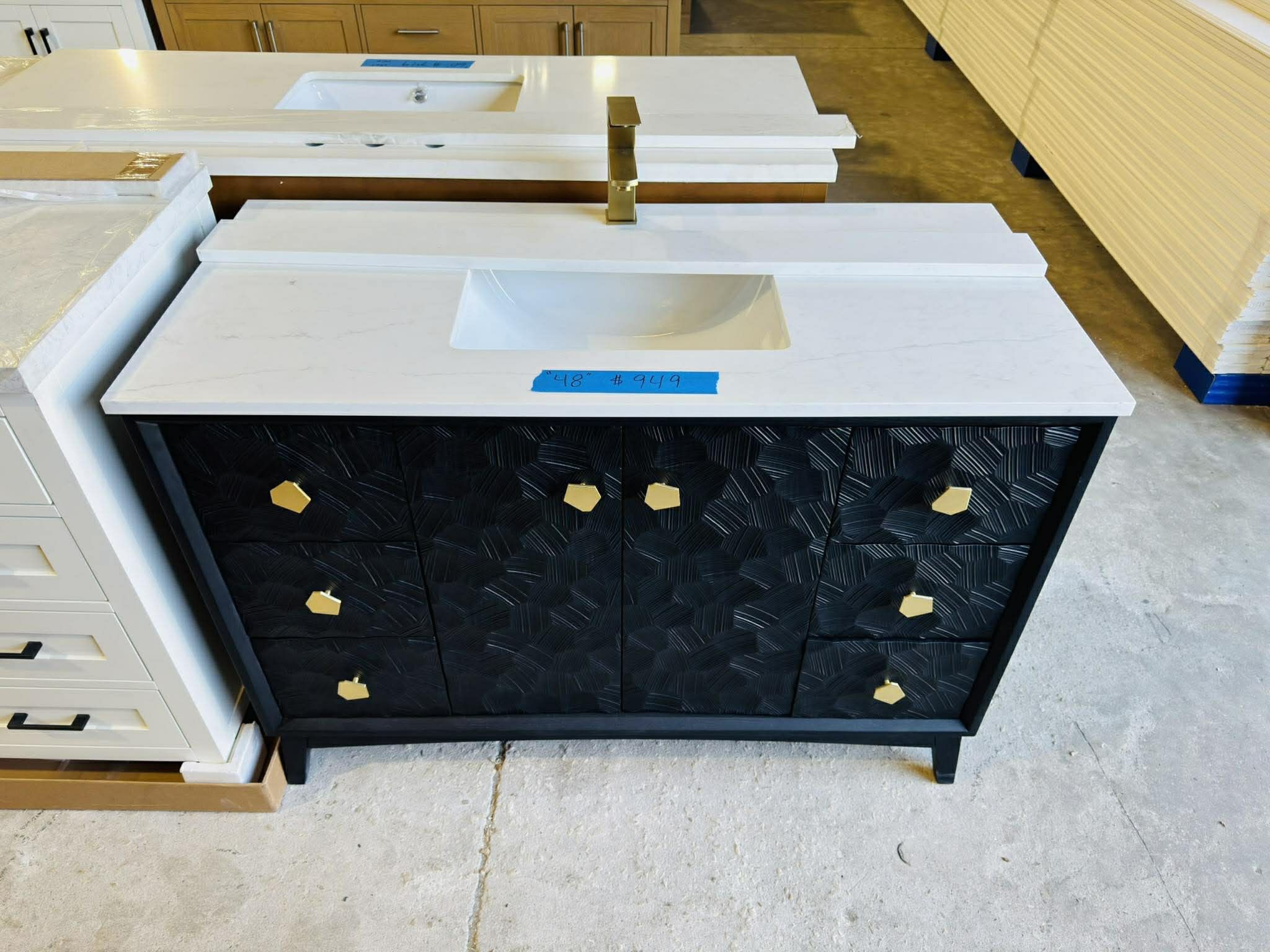 48 in Single Sink Bath Vanity in Black Color with Marble Top in White $949