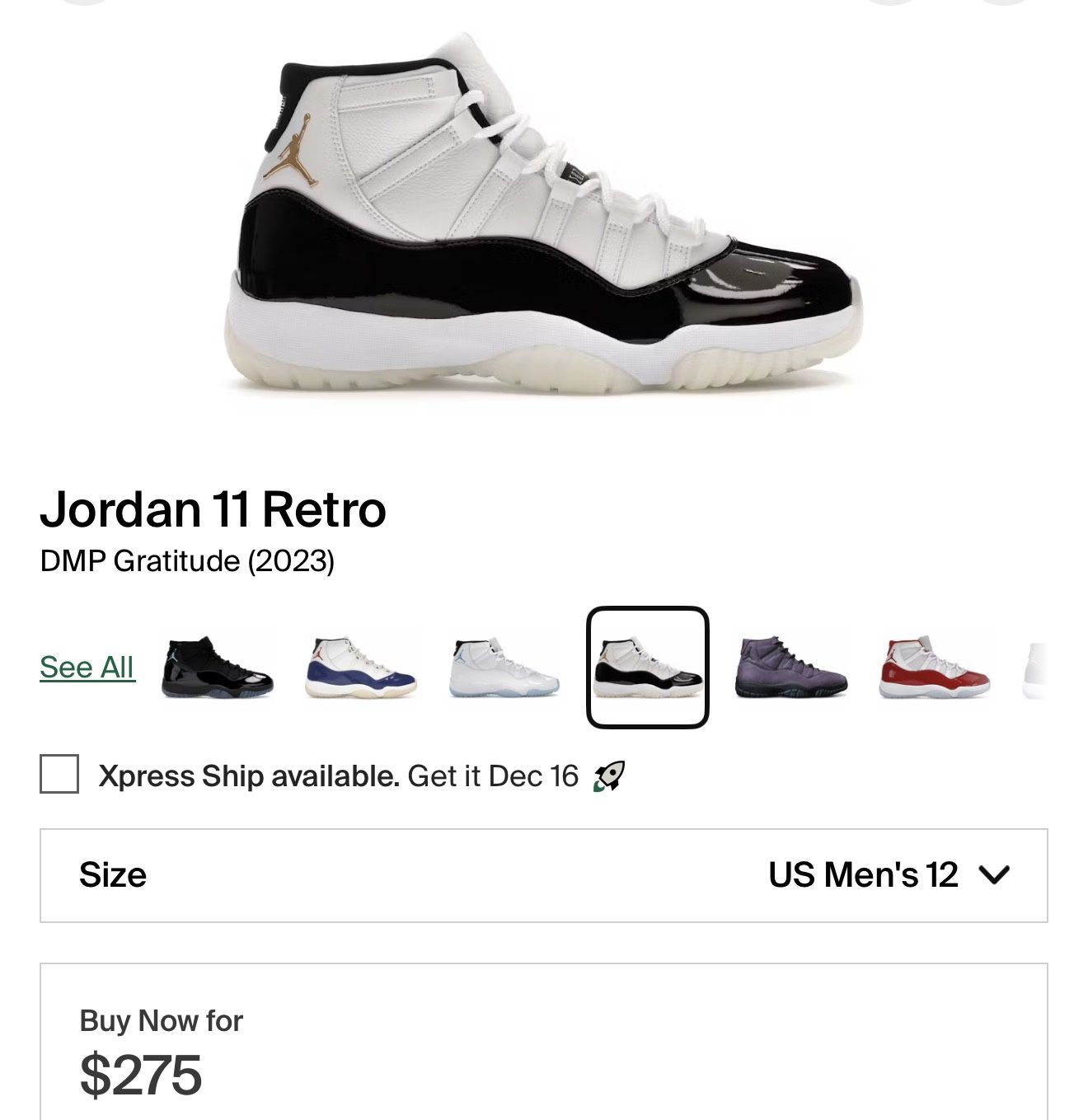 Nike Men Air Jordan 11 Gratitude Defining Moments Size 12