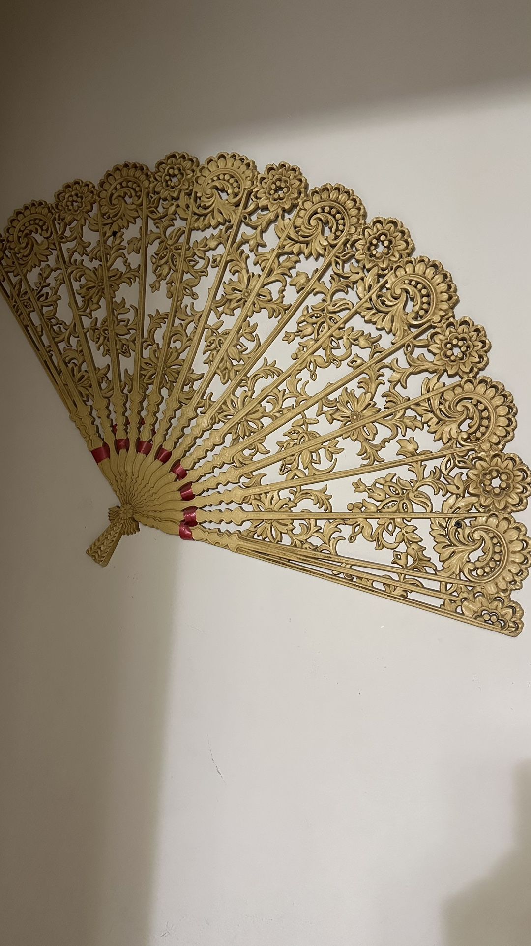 Large Vintage Burwood Wall Hanging Fan MCM Hollywood Regency 43" x 26"