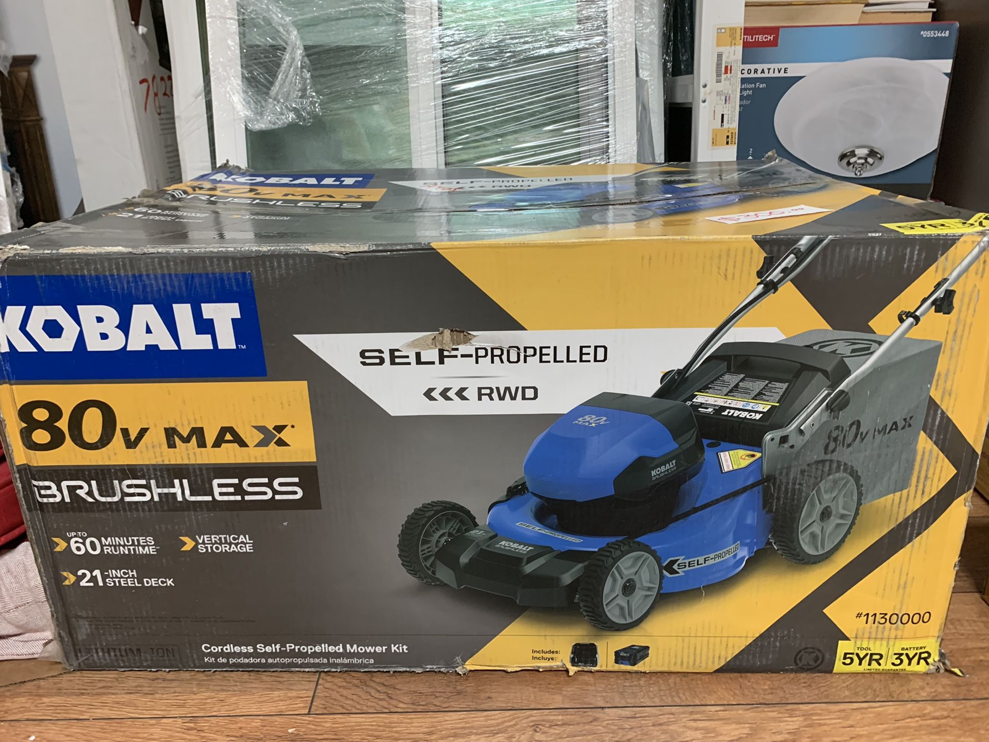 Brand new kobalt lawnmower with battery and charger. Regular price is 599.00