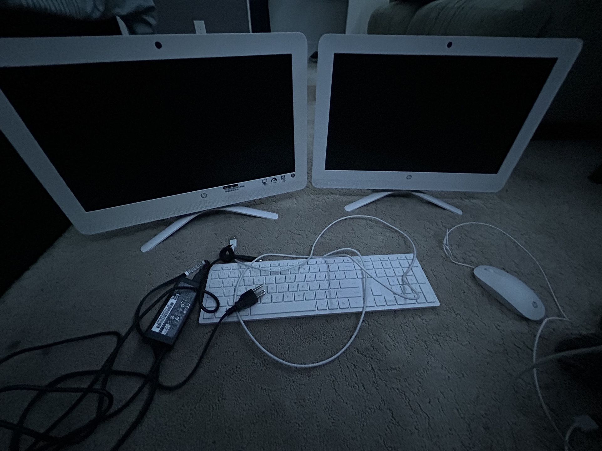 comes with 1 mouse, 1 keyboard, 1 charger they are perfect condition barley used everything works great $200 OBO comes with both pcs