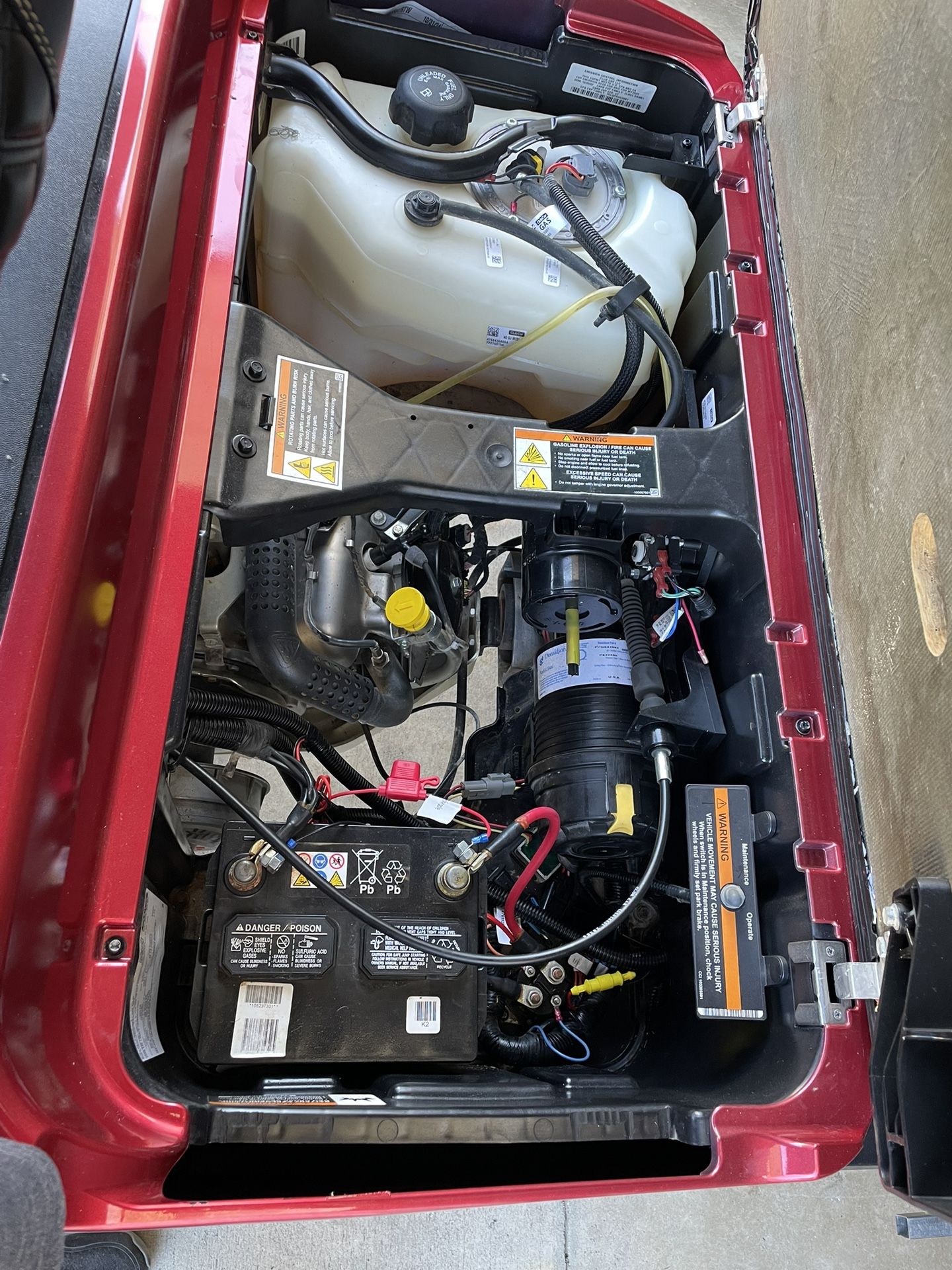 Beautiful, like new 2023 candy apple red Club Car gas golf cart. Kohler fuel injected engine. Just serviced including new battery, air filter and oil change. Only a couple years old so it’s in excellent condition and runs great … 27-28 mph Has a new lift kit and wheels. New windshield, LED light kit, seats and long top etc