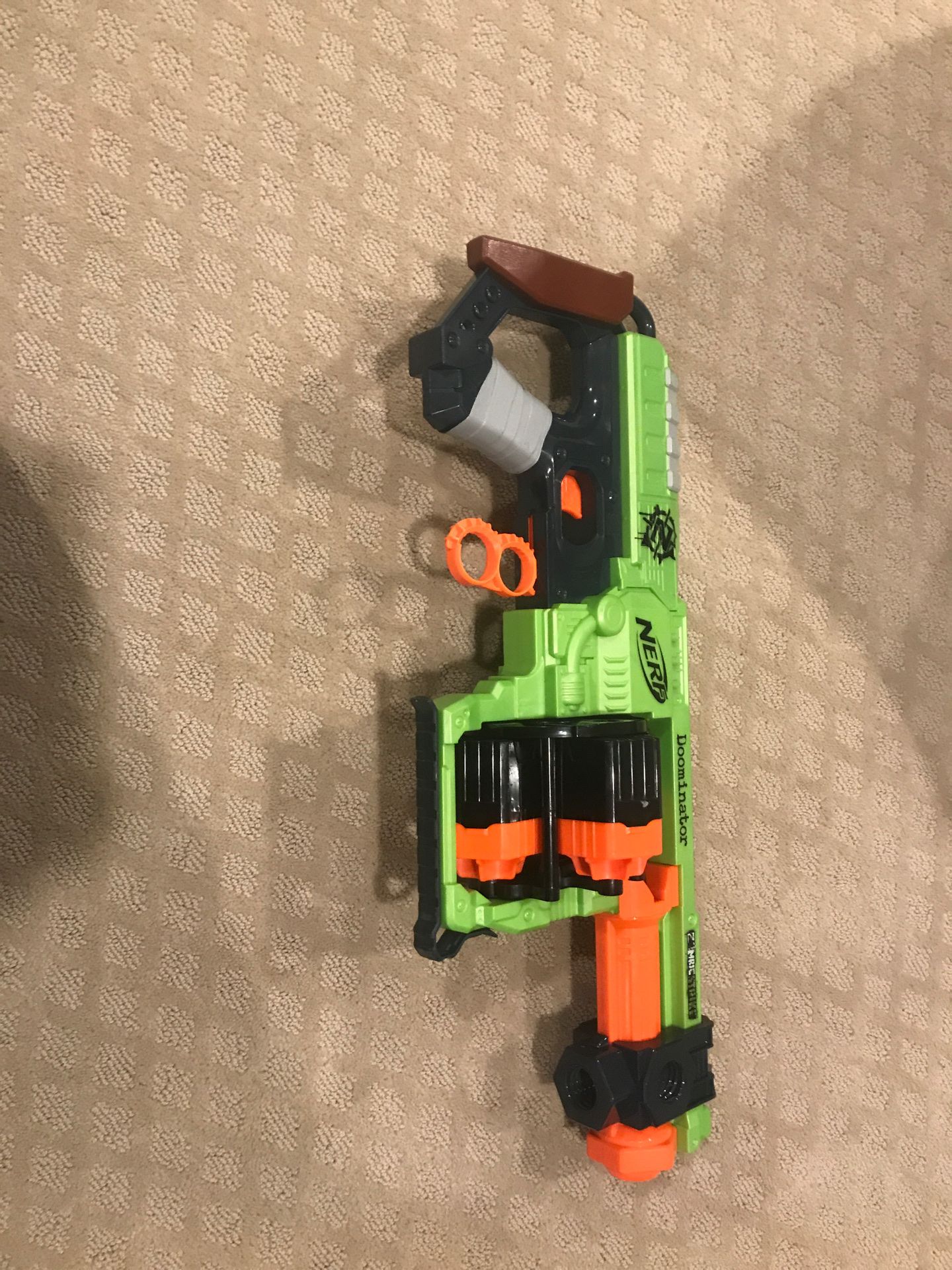 A nice good nerf gun that was barely used and can hold 24 bullets in the gun.