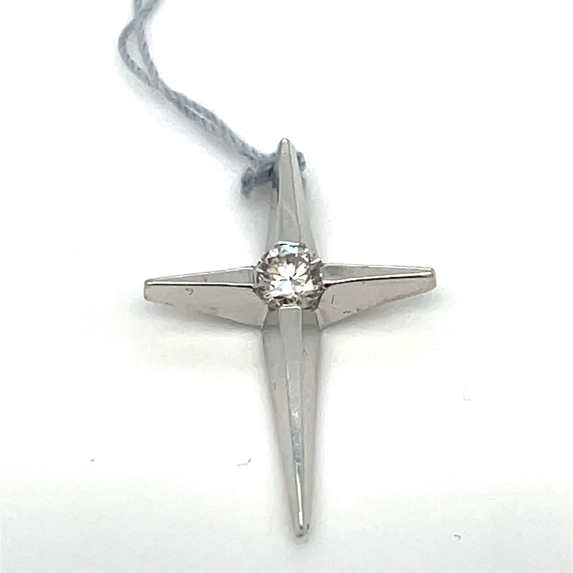 14KT White Gold Diamond Cross Pendant 1.30g I-1163