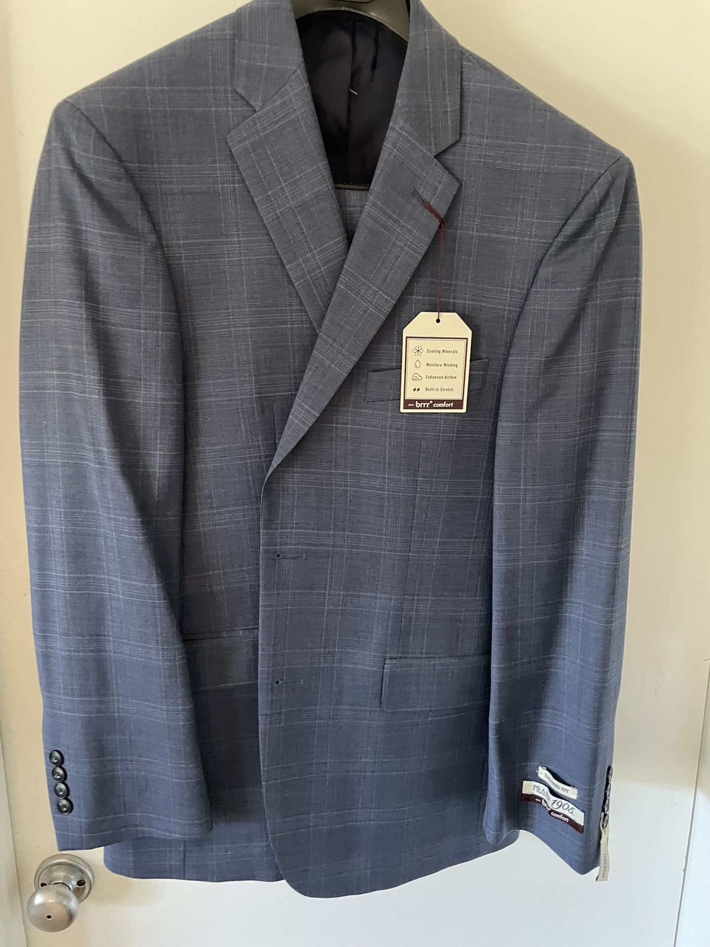 Brand new men’s suit from Jos. A. Bank. Size 40R jacket with 34” waist trousers. Features a sharp blue windowpane pattern for a polished, professional look. Crafted from 97% wool and designed with Brrr° comfort technology for breathable, moisture-wicking performance and enhanced all-day comfort. Ideal for business wear, formal events, or special occasions. Local pickup only — I do not ship items. For safety, I prefer to meet at the Union City Police Department during business hours. Thank you for understanding!