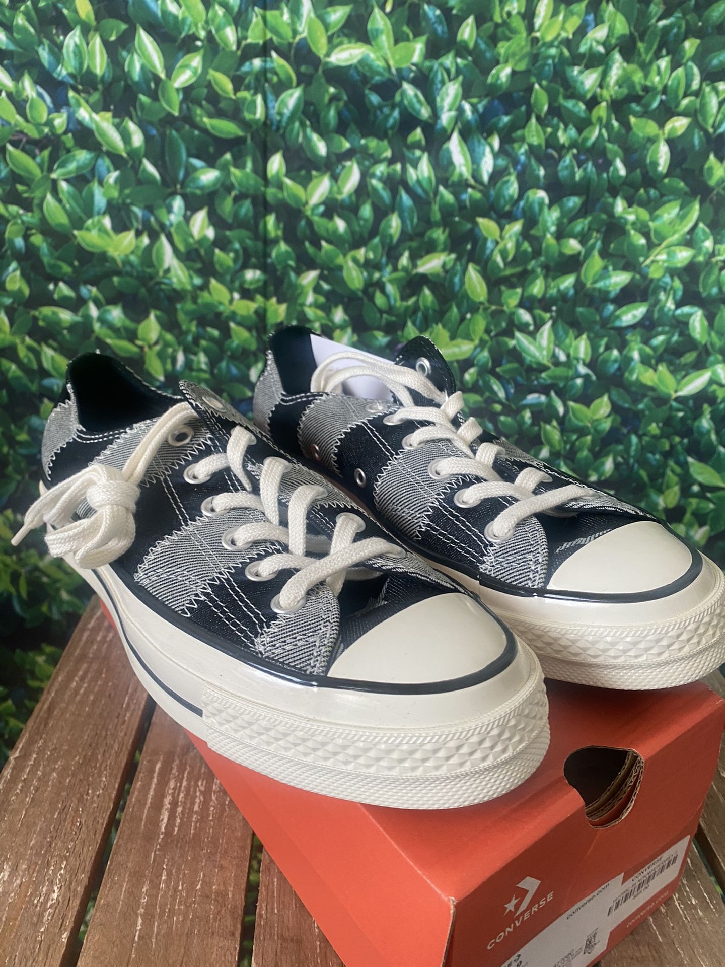 Product Description Product name : Converse Chuck 70 OX * Product Condition: Brand New * Product Price : $85 * Authentic * Brand : Converse * Item Code SKU : 167708C * Size Report: 7 (40) * Closure : Laces * Upper: Low Top * Toe Type : Round Toe * Color-way : Black/White/Egret