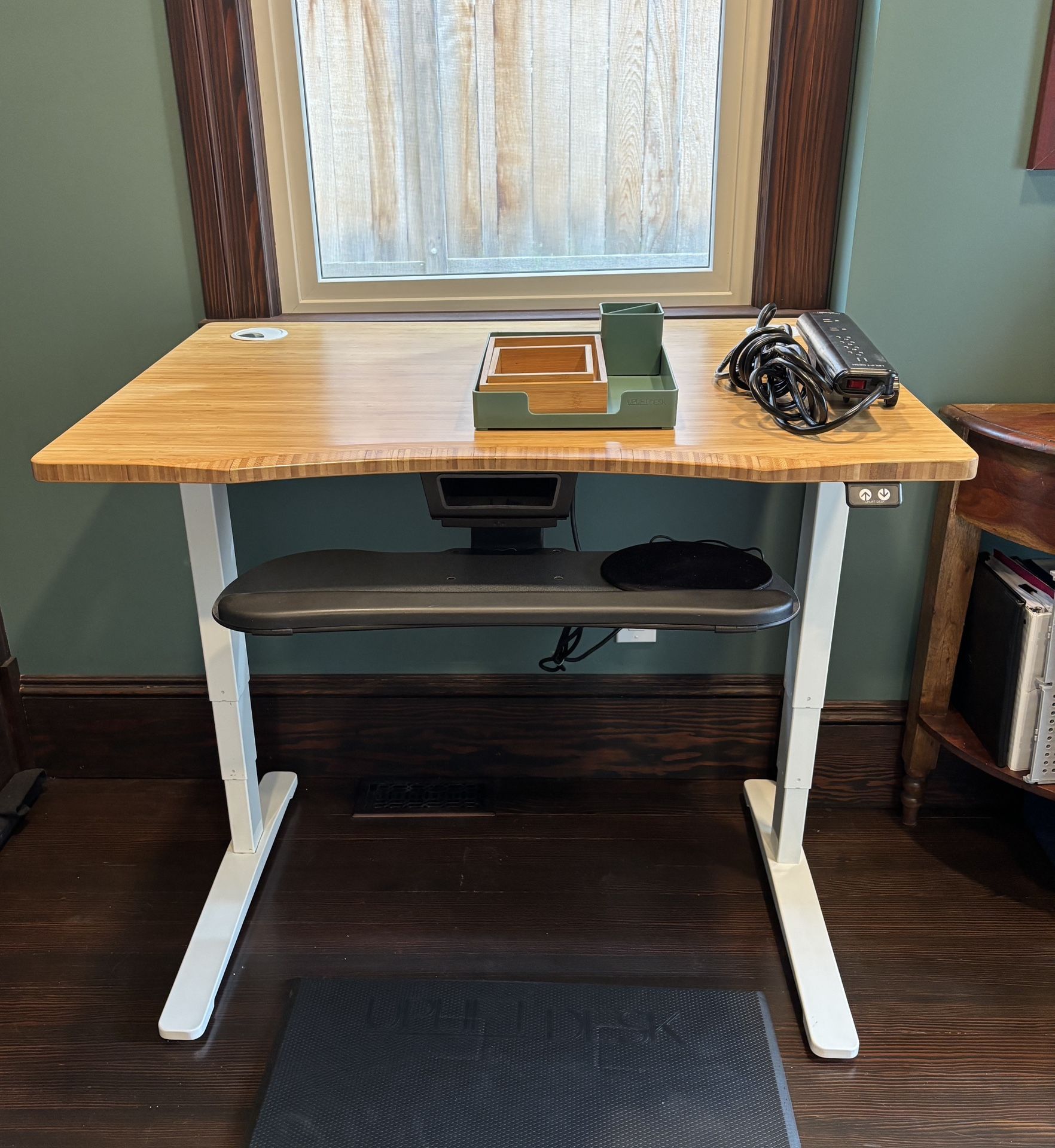 Adjustable Height Standing Desk with Curved Bamboo Top