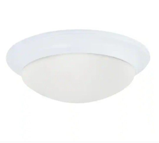 Generation Lighting Nash 14 in. W 2-Light White Flush Mount with Satin Etched Glass