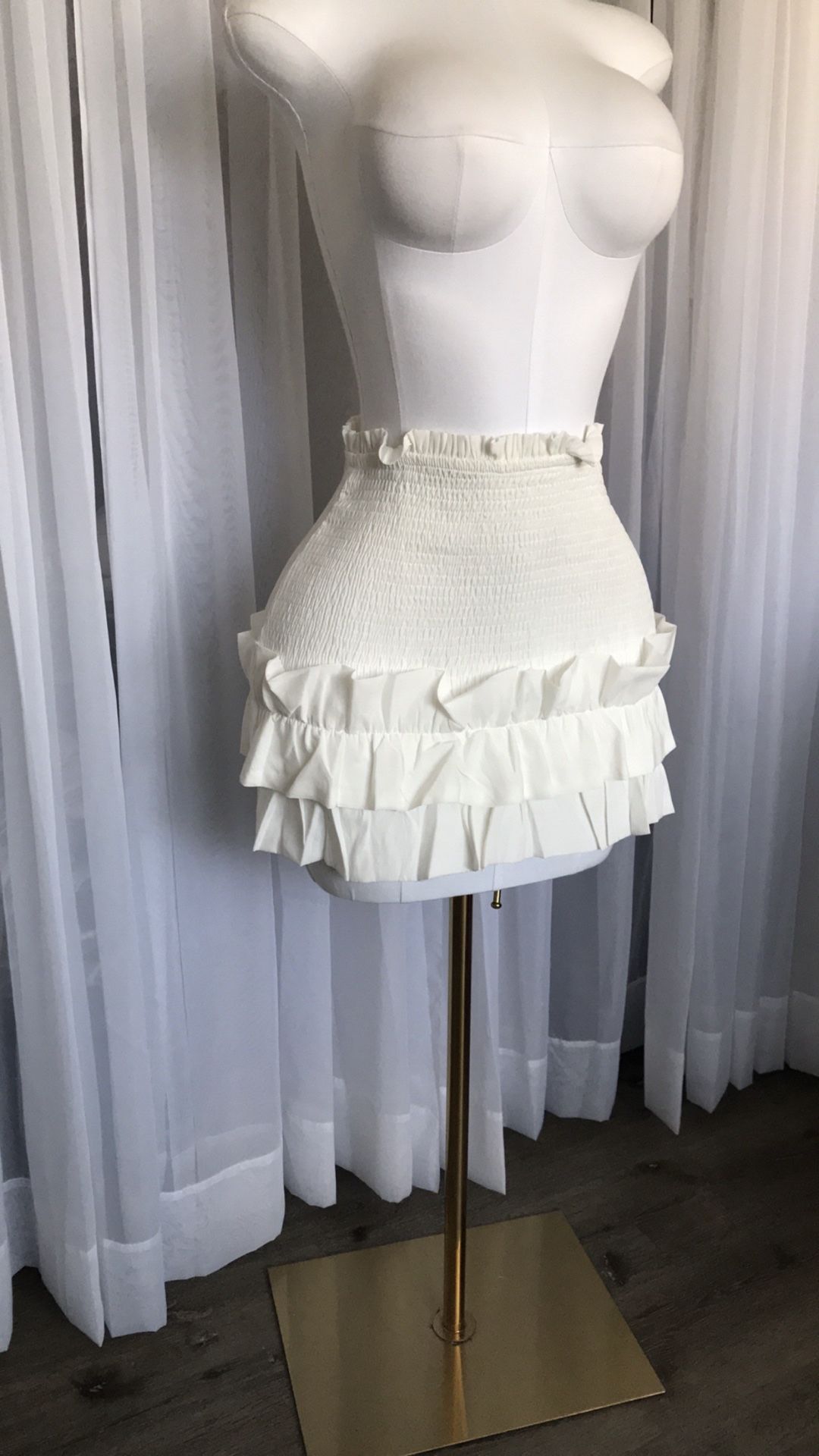White Smocked Ruffle Mini Skirt Size S