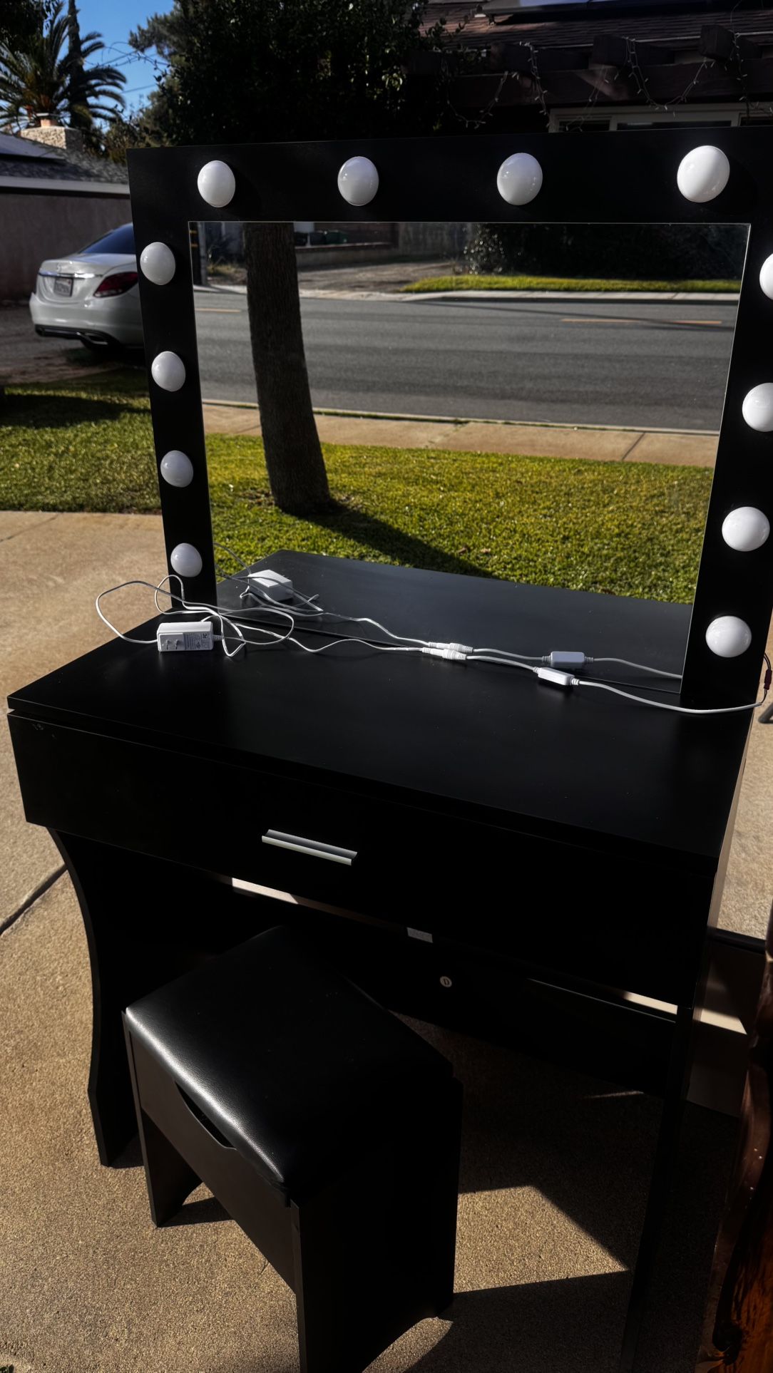 Black vanity with mini chair Chair has storage