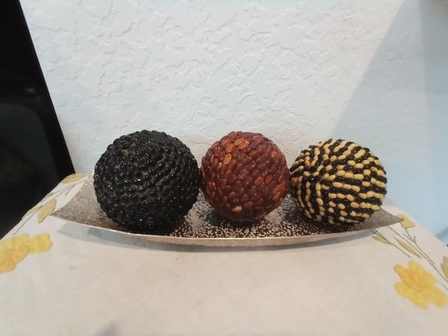 Magical Fruit, Hand Crafted Beans Spheres In A Silver Cast Aluminium Plate.