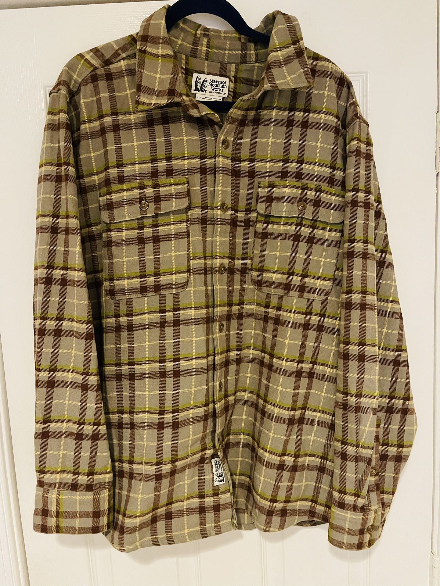 Men’s Marmot Mountain Works Doran Mid Weight Flannel Plaid Outdoor Hiking Camping Shirt Size Large in very good condition.