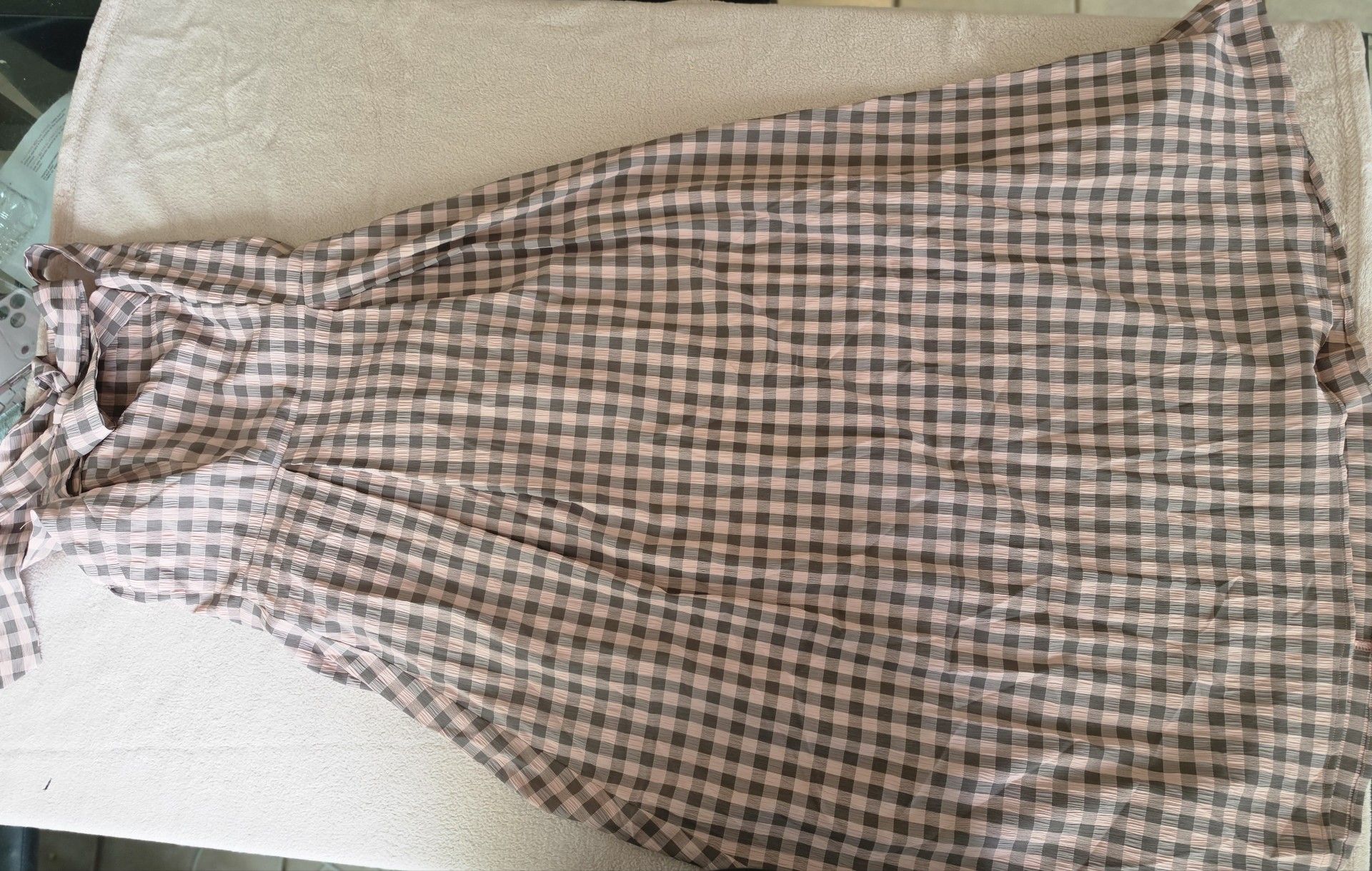 Sweet Gingham Summer Midi Dress 🌸 Super cute and comfy! Has a stretchy smocked top and adjustable shoulder ties. The fabric is really light and flowy, perfect for hot weather. Size: [Large] Color: Dusty Rose / Tan Plaid Vibe: Cottagecore / Picnic / Summer