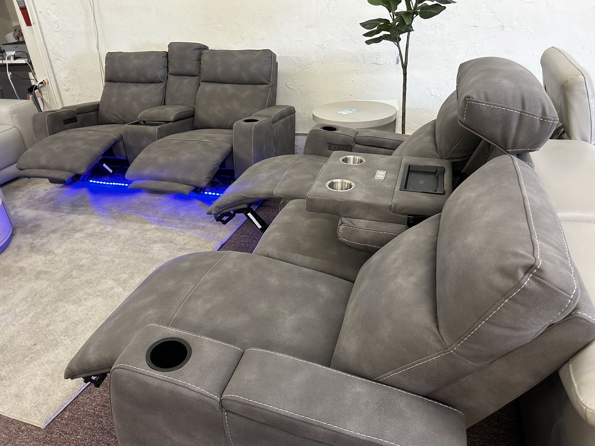 Sofá: 83.5"W x 40.5"D x 41"H $985 Loveseat: 74"W x 40.5"D x 41"H $985 Chair also available: 37"W x 40.5"D x 41"H $499 Price for each Non removable cushions Drop down table on sofa USB & USB- C ports Wireless charging Delivery available Financing available Store display item