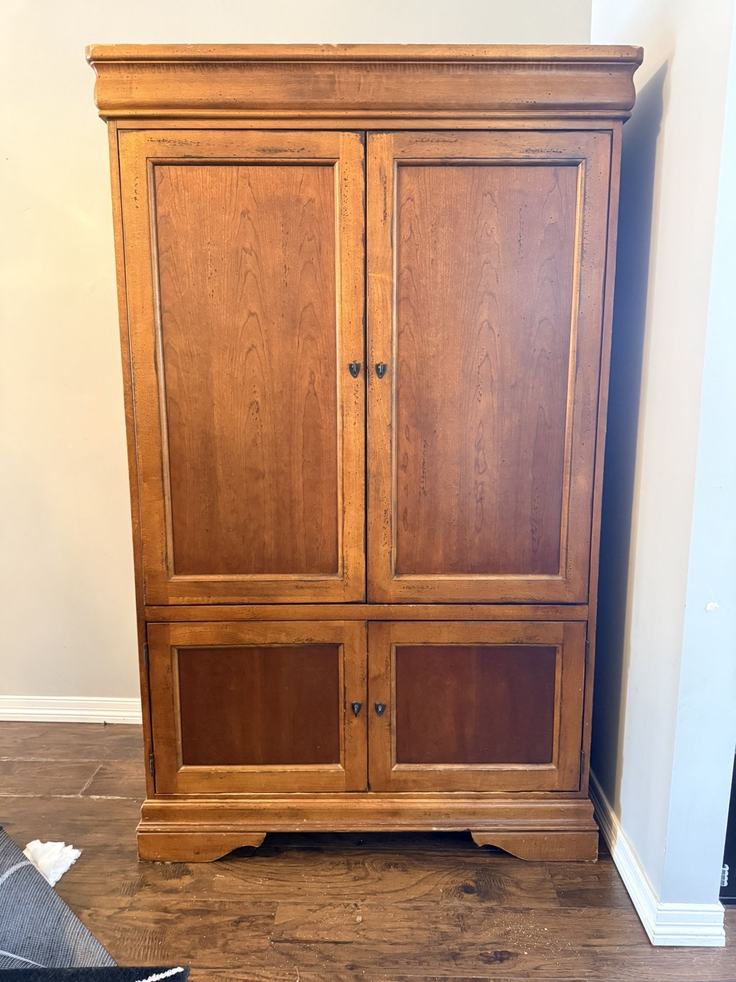 Purchased a new piece and time to part with this one. I want it gone ASAP so posting for free. It is HEAVY more. 24” D x 74” H x 44” W.
