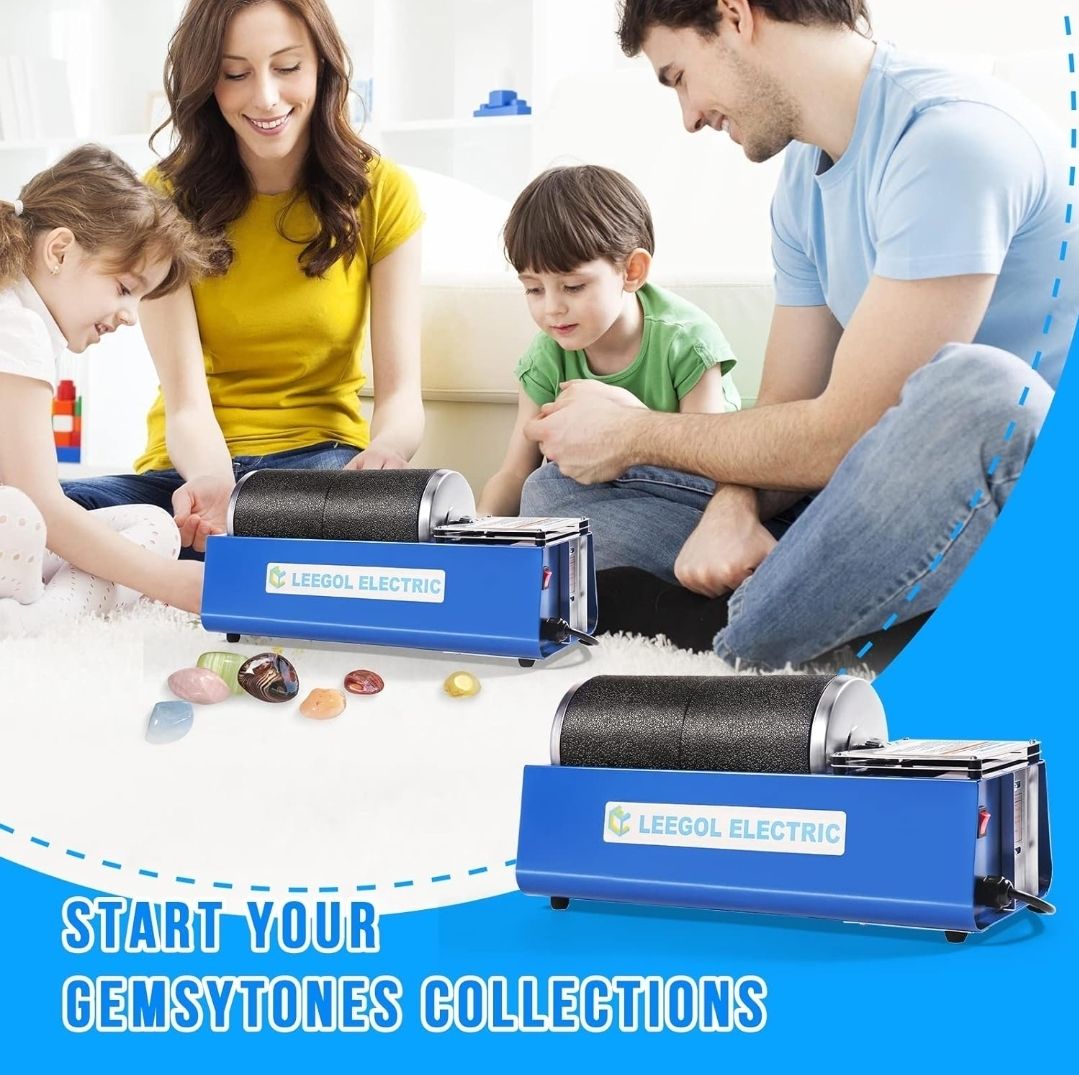 Leegol Electric 6LB Rock Tumbler Kit – Double Drum Rock Polisher for Kids & Adults Dual drum rotary 45 RPM speed New open box