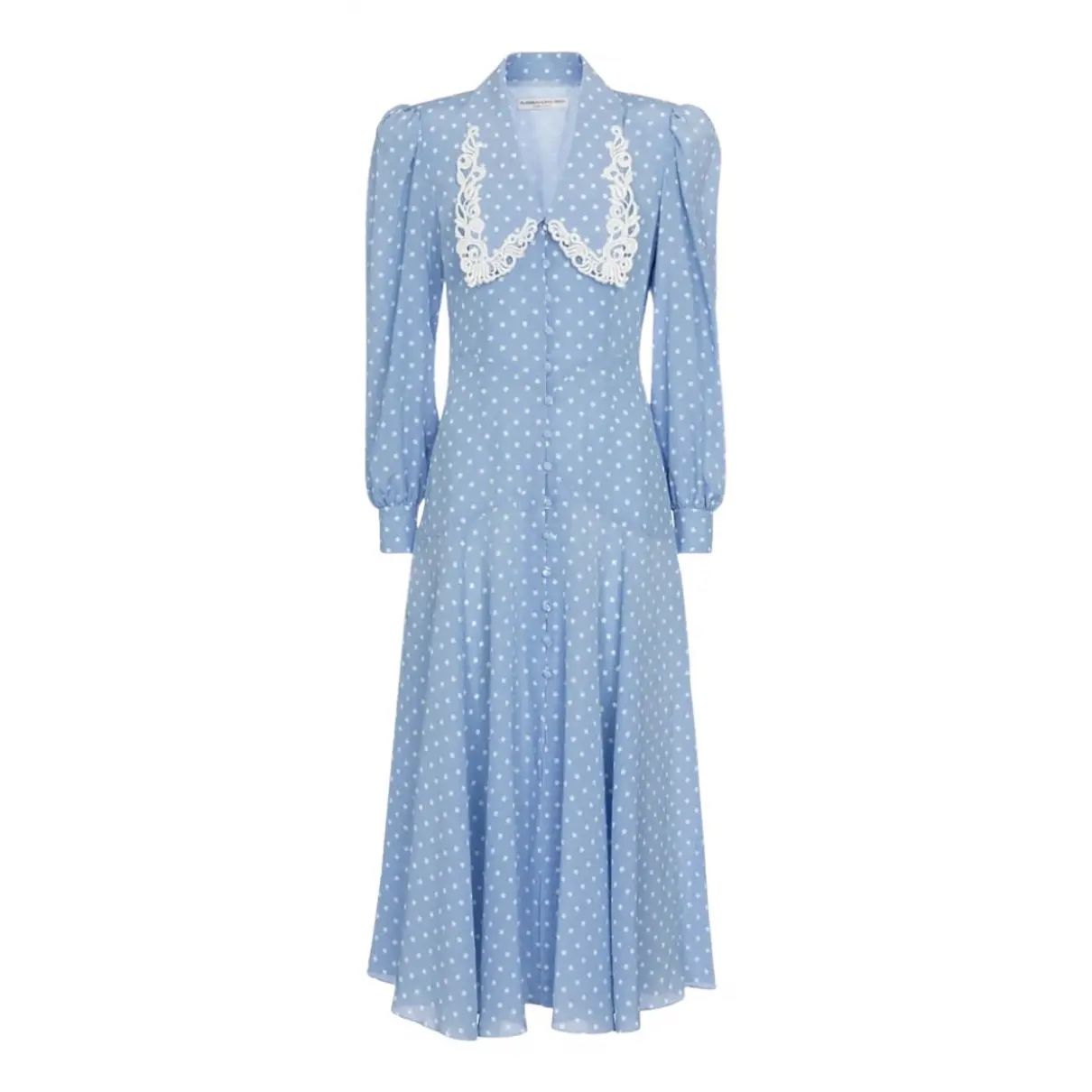Alessandra Rich Powder Blue Polka Dots Longsleeve Midi Dress Size 40 S