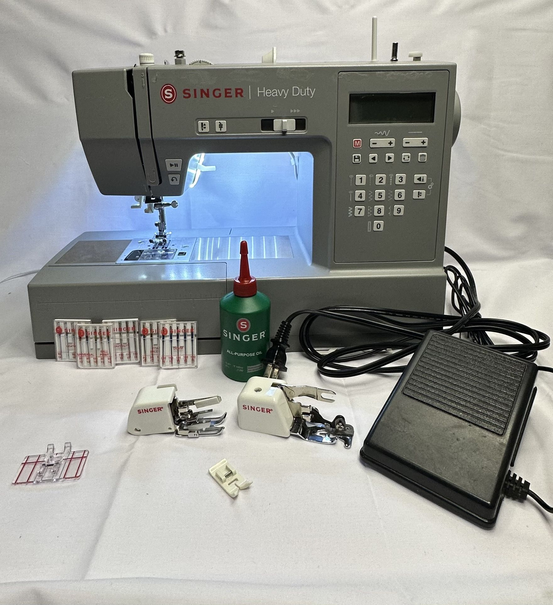 Singer Heavy Duty 6700C Sewing Machine + 80 Yards of Tulle & Accessories – Great Deal Well-maintained Singer HD 6700C sewing machine in excellent working condition. Strong, reliable, and perfect for everyday sewing, alterations, crafts, or small business use. Singer HD 6700c sewing machine, Singer Side Cutter Attachment, SINGER Heavy-Duty Crafting Presser Feet Kit, Singer Sewing Machine Oil (never opened), Sunger Heavy Duty Needles, Singer Denim Needles, Singer Leather Needles, Titanium Ball Point Needles, Universal Needles, Tulle Taupe - 40 yards, White - 80 yards, Ivory - 40 yards Everything you need to start sewing right away. Ideal for beginners or experienced sewers looking for a heavy-duty machine with lots of extras. Clean, tested, and ready to use. Priced to sell as a bundle. If interested, please message me