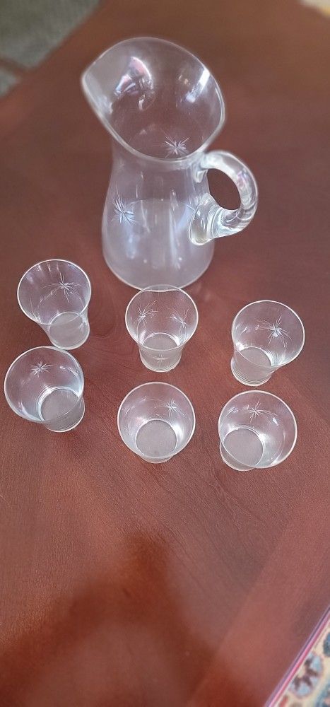 Vintage Fosteria Starburst tumblers set Pitcher with six glasses from MidCentury 50s 60s Have your Mad Men Happy Hour! Excellent condition.