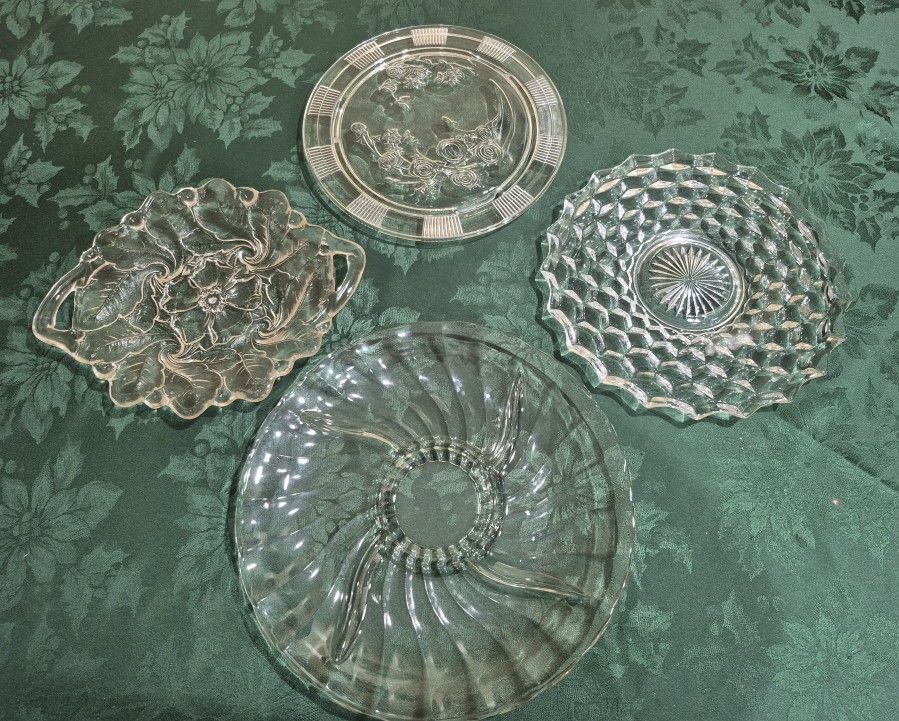 Four glass serving plates and platters for $10.00. Porch pickup in S Hill Puyallup off 119th Ave E near Pope Elementary. Cash only.