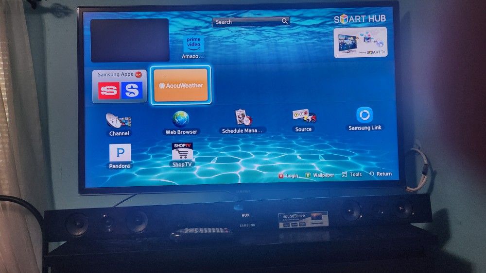 36 in 3D SMART HUB SAMSUNG TV. 3D 2 GLASSES INCLUDED still in box. Like new. Needs a universal remote controller.