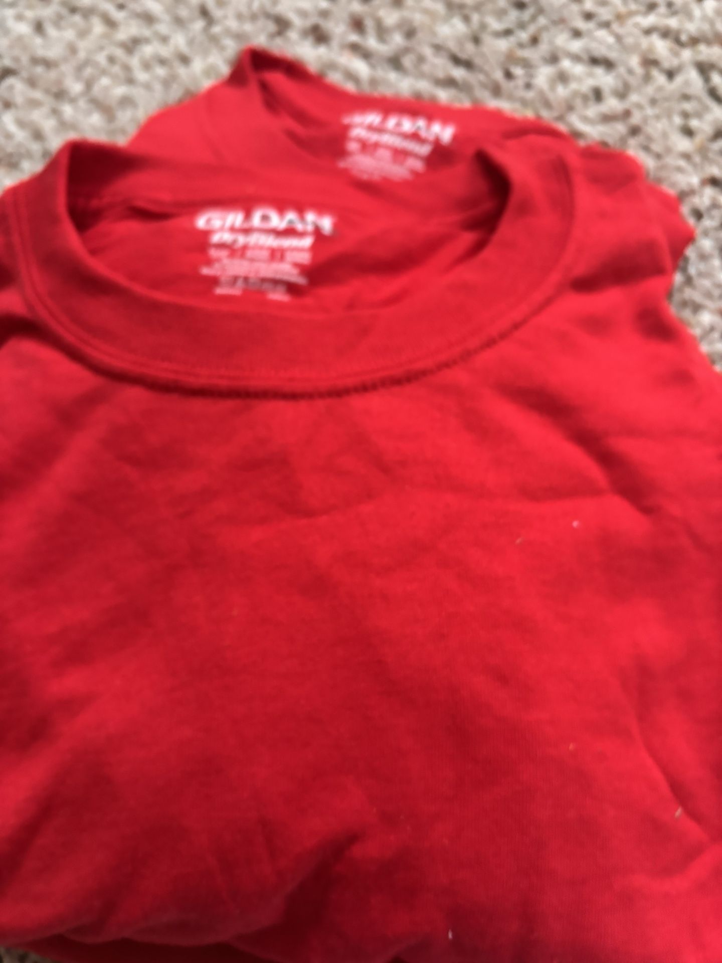 White, red, grey, purple, and pink and various sizes. Looking to sell the entire lot (approx 35 t shirts) $3 a shirt.