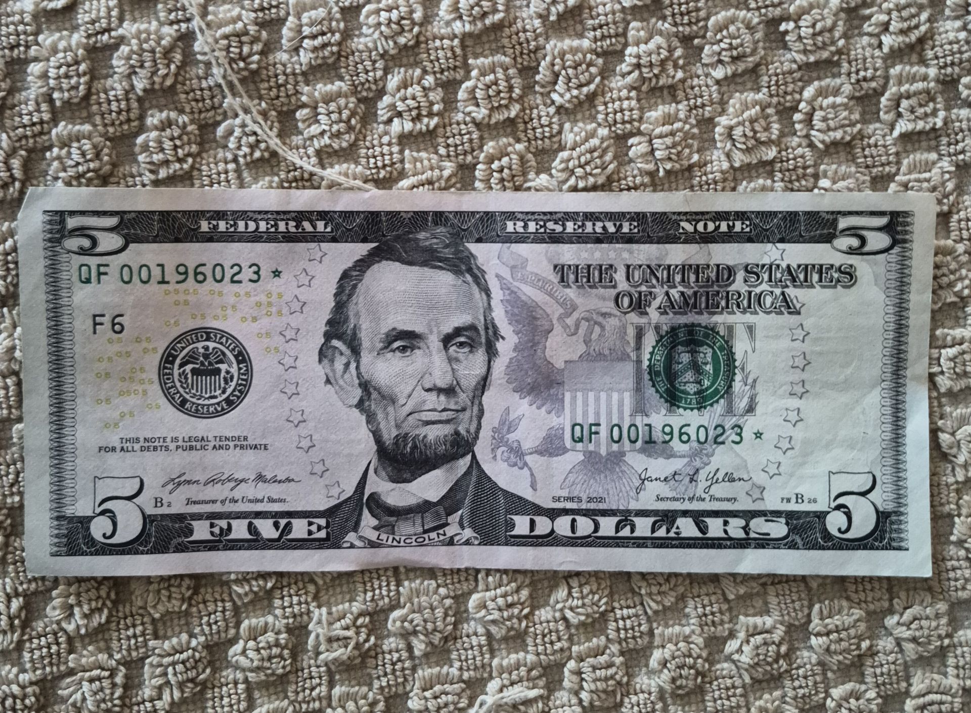 $5 Star note. Serial number QF0019023. Selling for $60. OBO