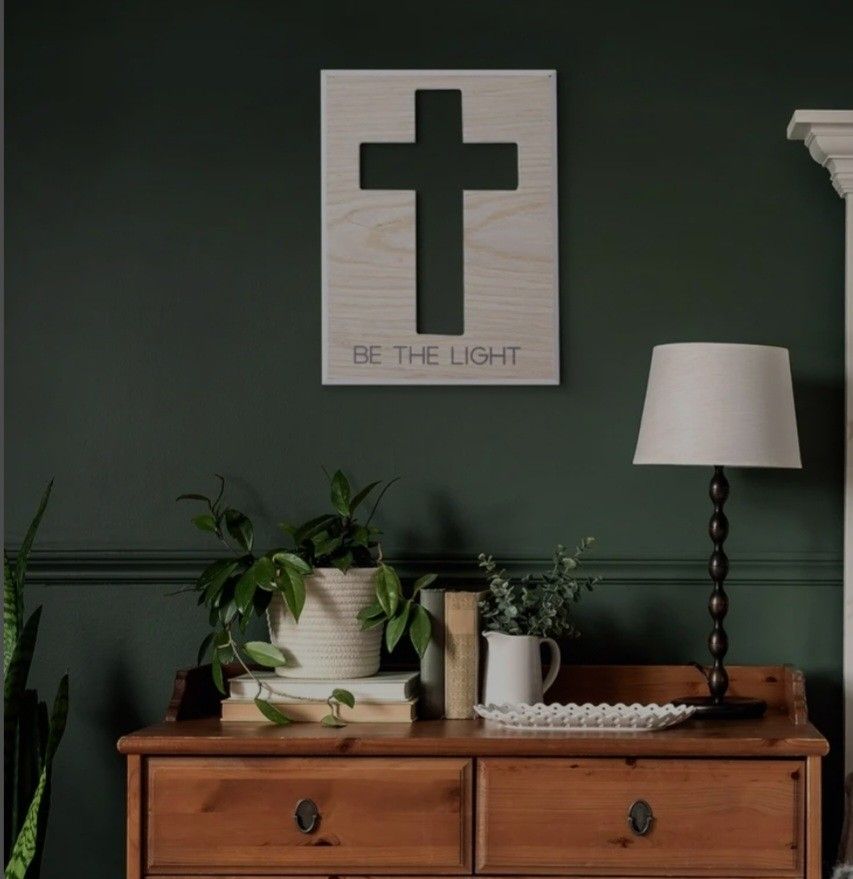 Enhance your home with this elegant natural brown cross wall decor. Perfect for adding a touch of serenity to any room. Farmhouse art adds a cozy rustic touch to your space with this faith-inspired positive affirmation wall decor displaying the guiding phrase "Be the light." This neutral-toned motivational quote wall hanging brightens the living room, dining room, kitchen, or bedroom with a simple design and emotive words. Give your family and friends a heartwarming feel in your home with this pleasant farmhouse style inspirational typographic wall art. Express the sentiments of care and love to friends and family through the thoughtful gift of spiritual wall art decor. Our inspirational wall art sign comes with a single keyhole hanger on the upper back ready to hang using only a hammer and nail. Features a cross carved out of wood with the deeply spiritual phrase "Be the light" printed in a subtle grey. Both pictures photographed are sold together #AU82323