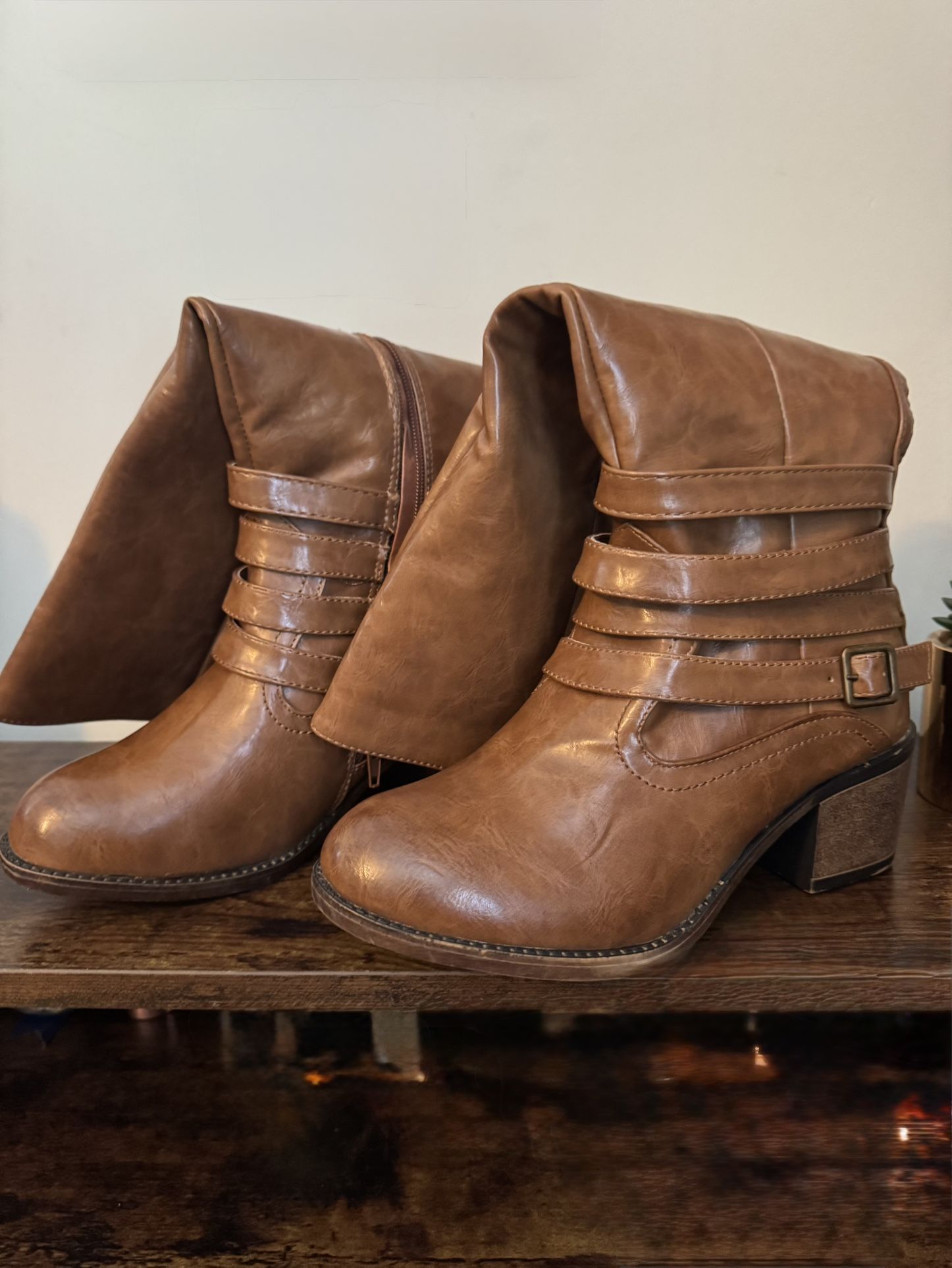 Step out in style with these chic brown leather boots. Perfect for any occasion, these boots offer both comfort and elegance.